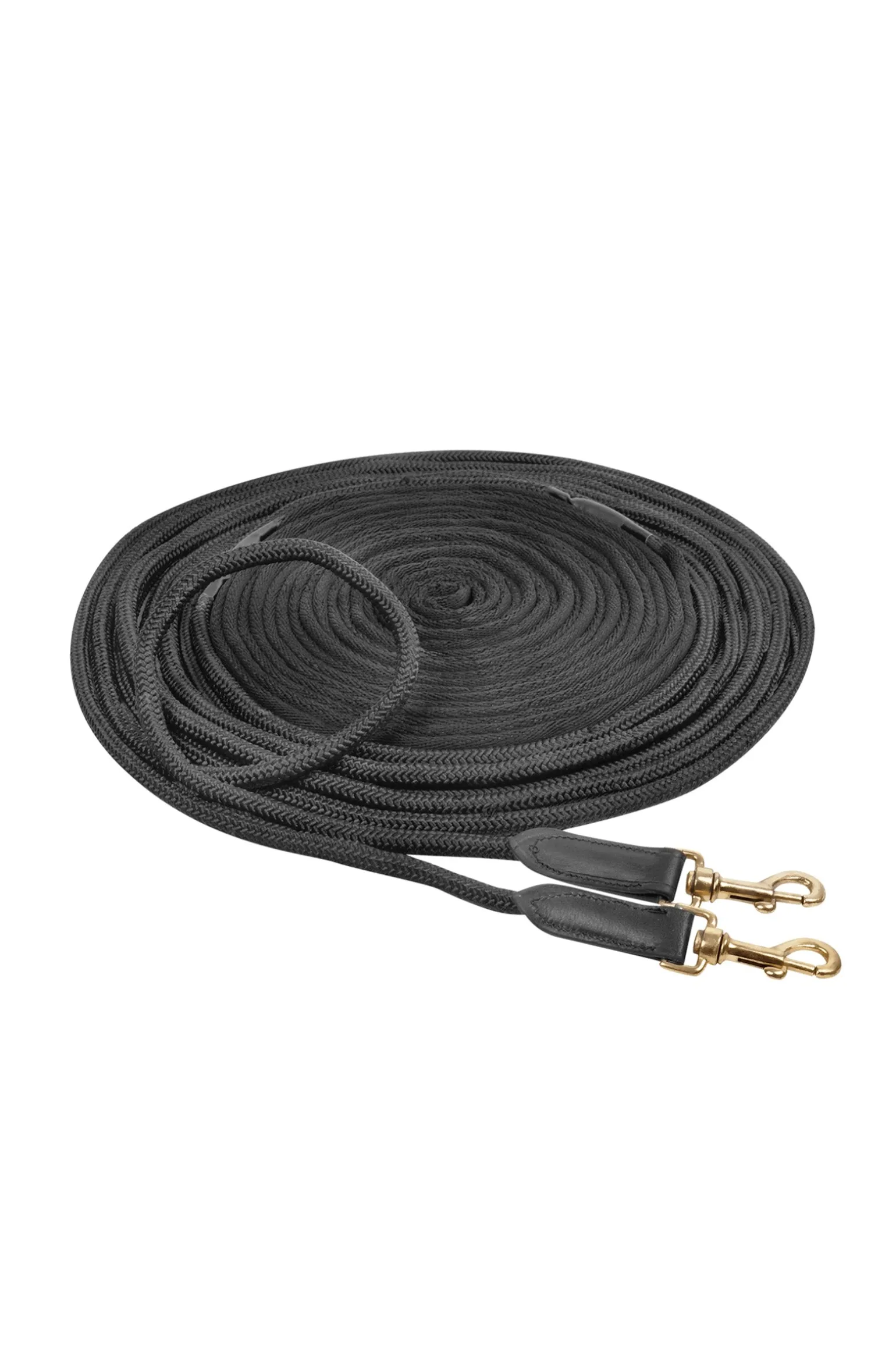 Mit rundgeflochtenen Vorderbereichen aus Nylon, welche leicht durch die Umlenkrolle laufen (Umlenkrollen nicht im Lieferumfang enthalten). Hinterer Longenteil aus flachem Webband, das angenehm weich in der Hand liegt. Drehkarabinerhaken mit Lederverstärkung befestigt.