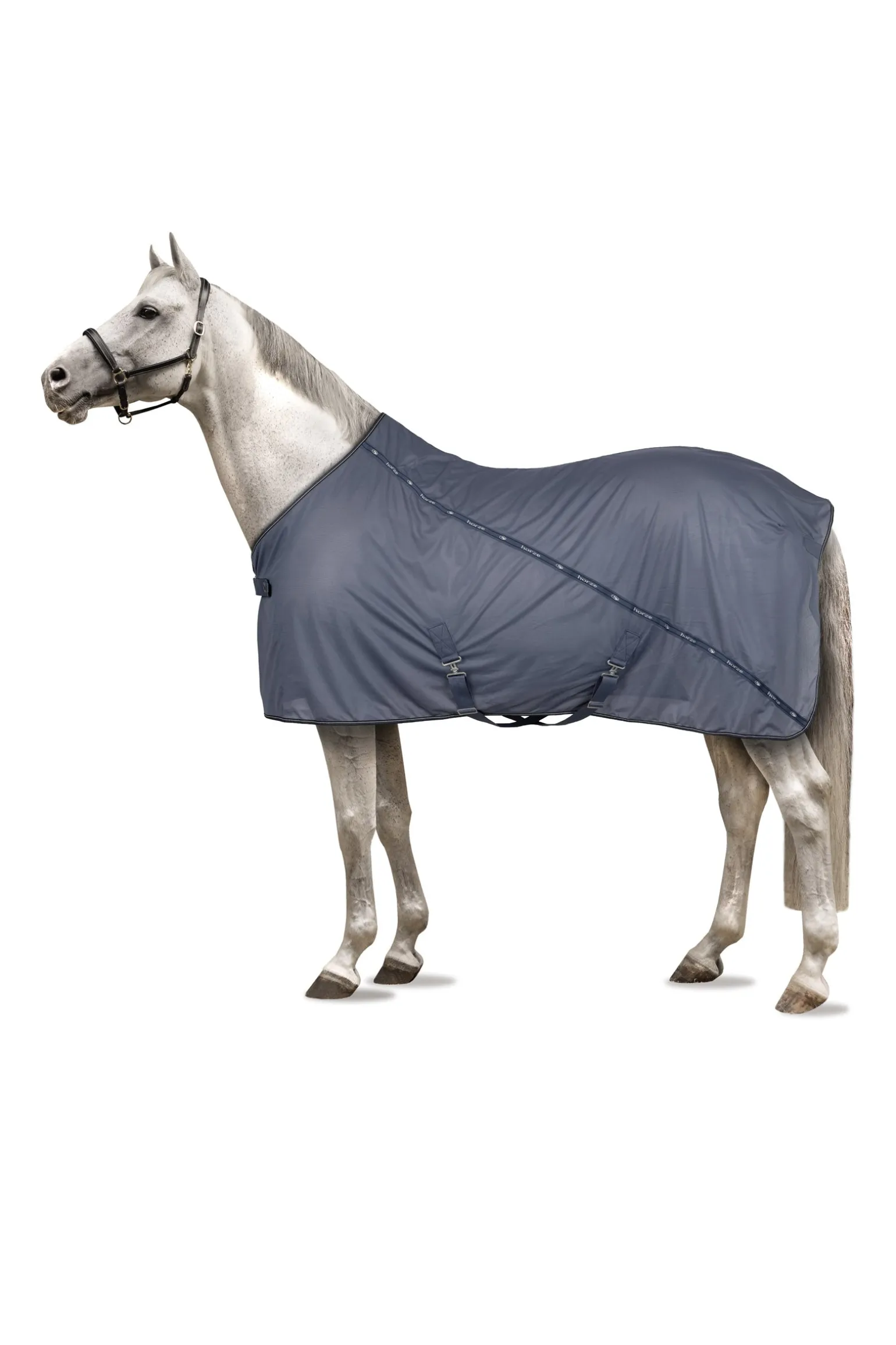 Die Horze Dorchester Decke besteht aus Netzmaterial, das an Sommertagen Komfort bringt. Doppelte T-Schnallen, Kreuzgurte und der Schweifriemen halten sie an ihrem Platz. Das diagoale Logotape sorgt für einen sportlichen Touch und die doppelte Einfassung für einen Hauch Eleganz.