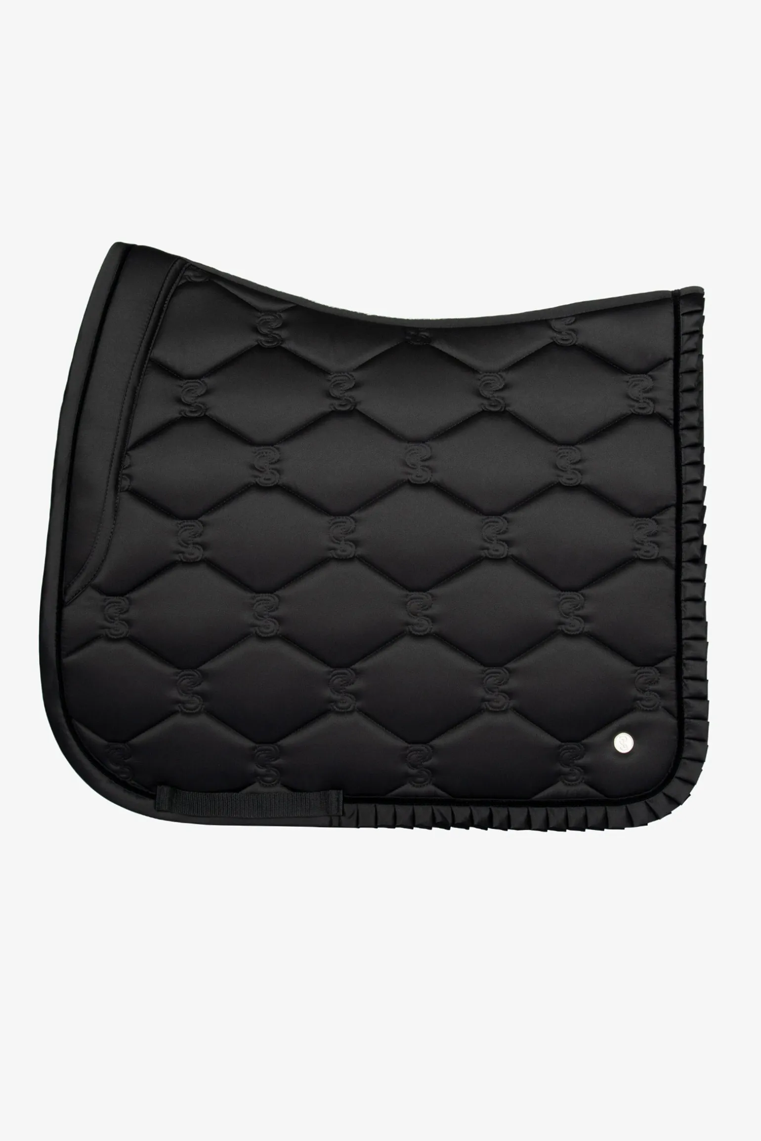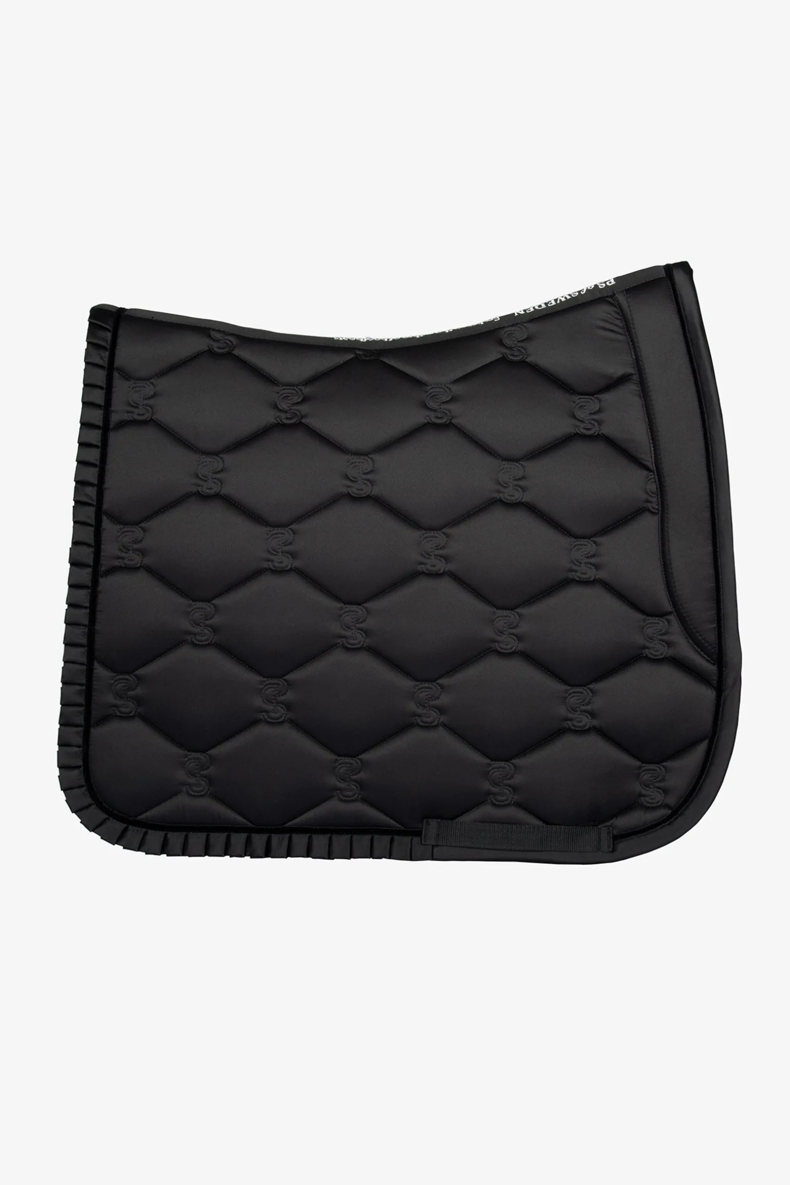 Anatomisch geformte Satteldecke mit einer Rüscheneinfassung und dem ikonischen PS-Zitat entlang der Wirbelsäule. Die Satteldecken haben zusätzlichen Platz am Widerrist und einzigartige Stopp-Polster, die die Satteldecke unter dem Sattel an Ort und Stelle halten. Die Unterseite besteht aus schnell trocknendem Material, das Feuchtigkeit transportiert und antibakteriell ist, und die Oberfläche ist schmutzabweisend.