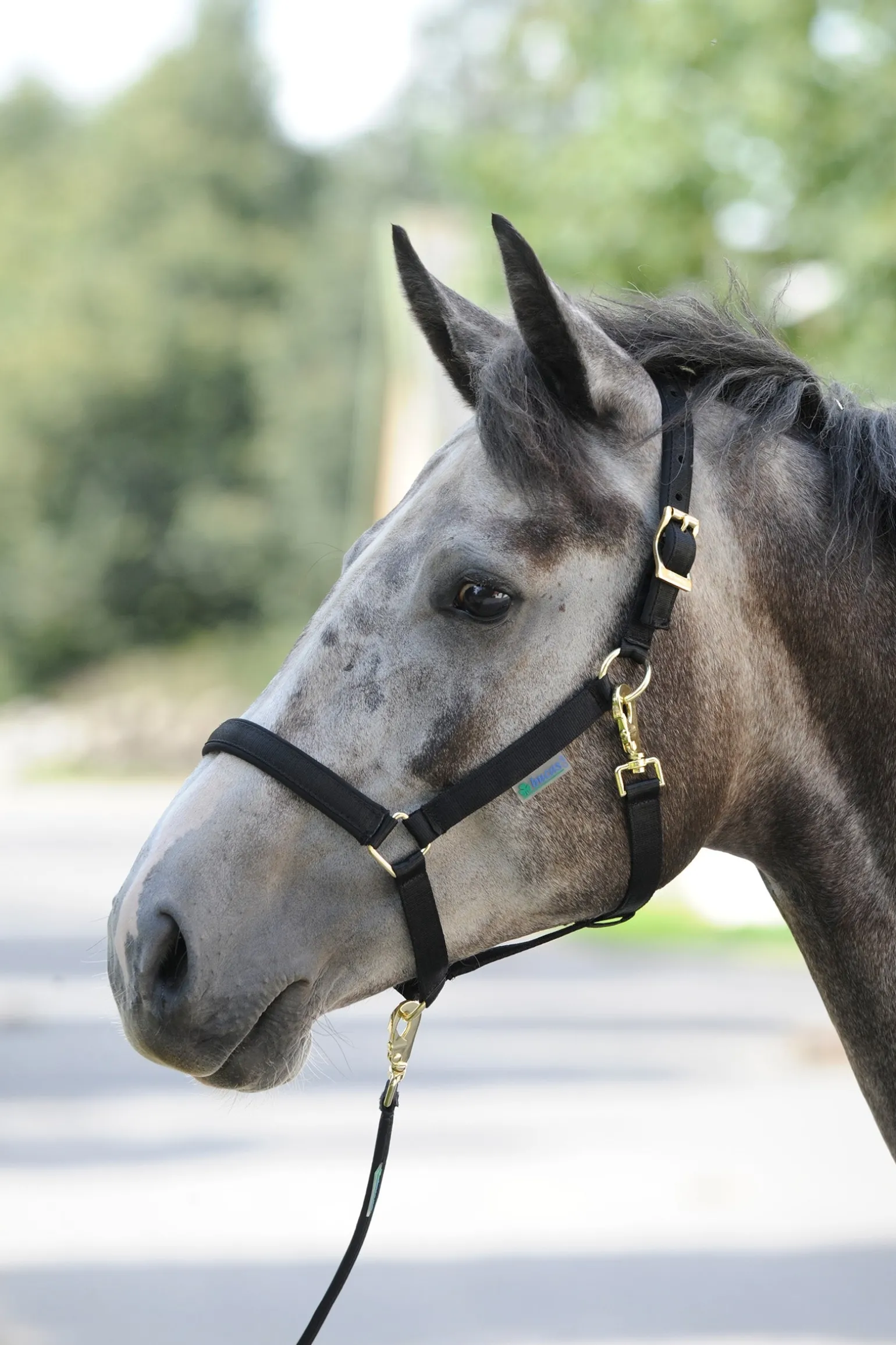 Die legendären Bucas Dublin Halfter sind so konzipiert, um den größtmöglichen Komfort zu bieten. Dies wird durch das weiche und dennoch starke, seiden-ähnliche Gewebe und die Polsterungen an Genick- und Nasenriemen sichergestellt. Ein speziell geformter Ring vereinfacht ein Öffnen und Schließen des Halfters mit dem Karabinerhaken und er reibt auch nicht am Pferd. Der Karabinerhaken ist so entwickelt, dass er nicht durch Schnee, Regen und Kälte beeinträchtigt wird. Das Genickstück ist auch mit einer stabilen Schnalle verstellbar.Das Dublin Fohlenhalfter bietet zusätzliche Verstellmöglichkeiten, um an das wachsende Fohlen angepasst werden zu können. Mit drei verstellbaren Schnallen.Gepolsterte Führleinen passen zu den Dublin Halftern. Länge 2 m.