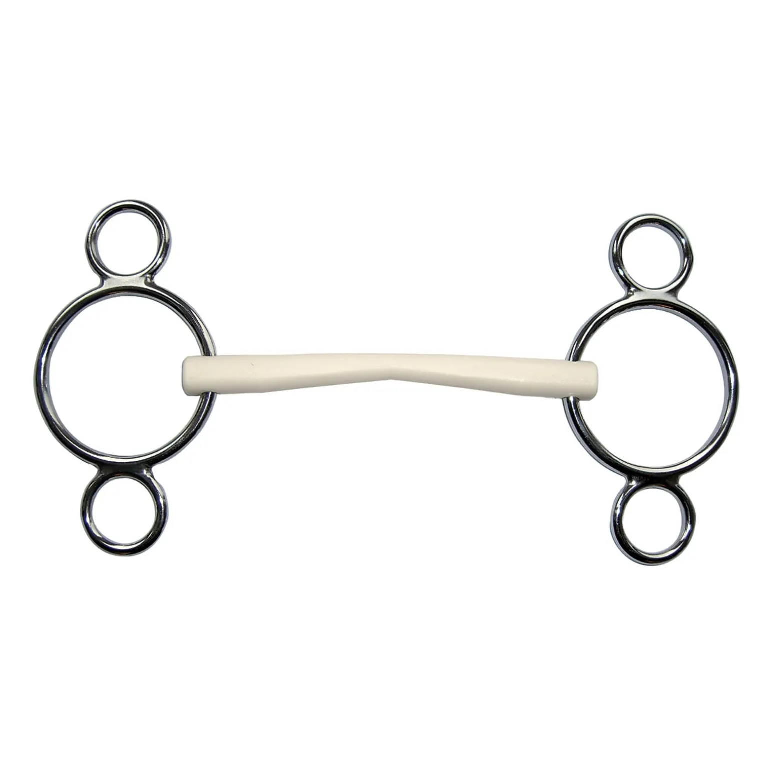 1. straight edged flexible bar.2. reversed leaves space for the tongue.This 3-Ring bit enables 4 different ways of attaching the reins to the bit.It is therefore very versatile and extremely popular among Jumpers as it can achieve more control when needed. Depending on the way the reins are being attached to the rings varying degrees of lever action intensify the riders aids.