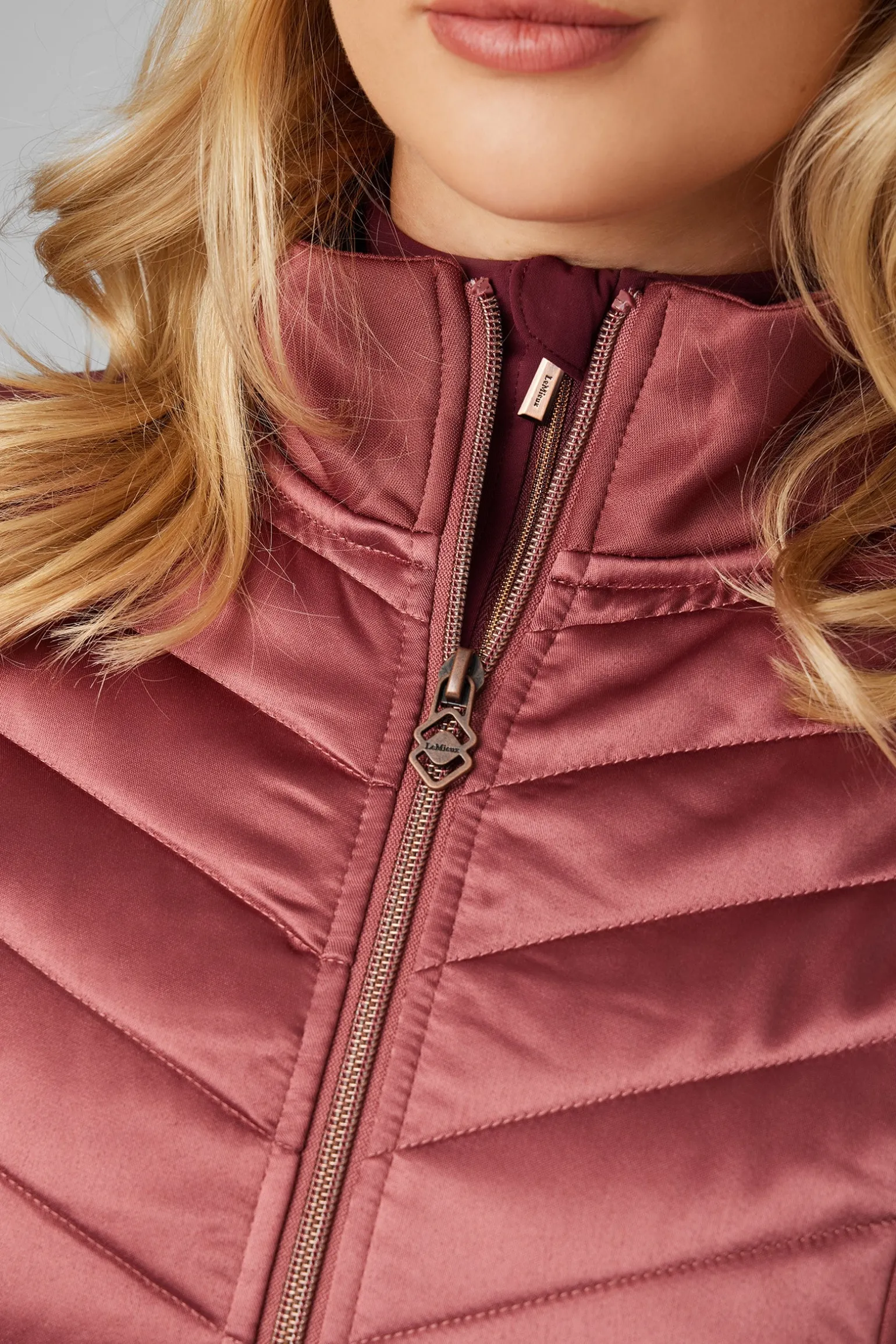 Der figurbetonte Schnitt schafft eine schmeichelhafte Silhouette, während die Details der vorderen Reißverschlusstaschen, der durchgehende Reißverschluss und das LeMieux-Abzeichen der Jacke ein edles Finish verleihen.