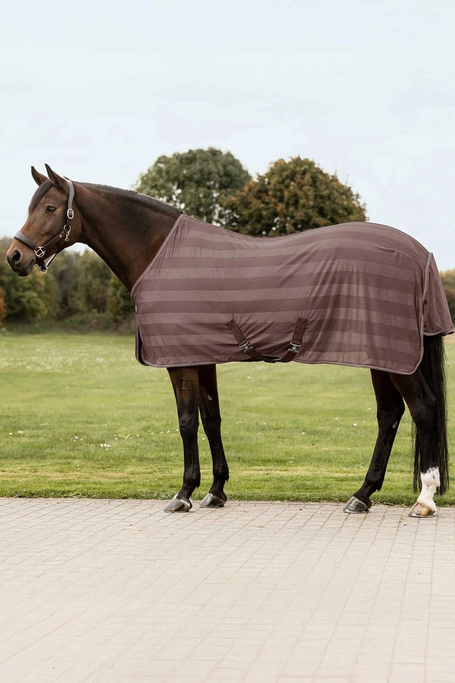 Klassische Fliegendecke, die effektiv vor störenden Insekten schützt. Sie ist mit abnehmbaren, verstellbaren Kreuzgurten ausgestattet, die eine präzise Anpassung an das Pferd ermöglichen. Zudem verfügt sie über einen Schweiflatz, eine tiefe Hinterhandkordel und einem Klettverschluss unter einem praktischen T-Verschluss.