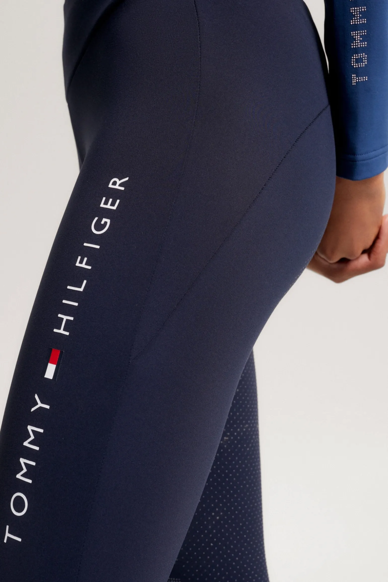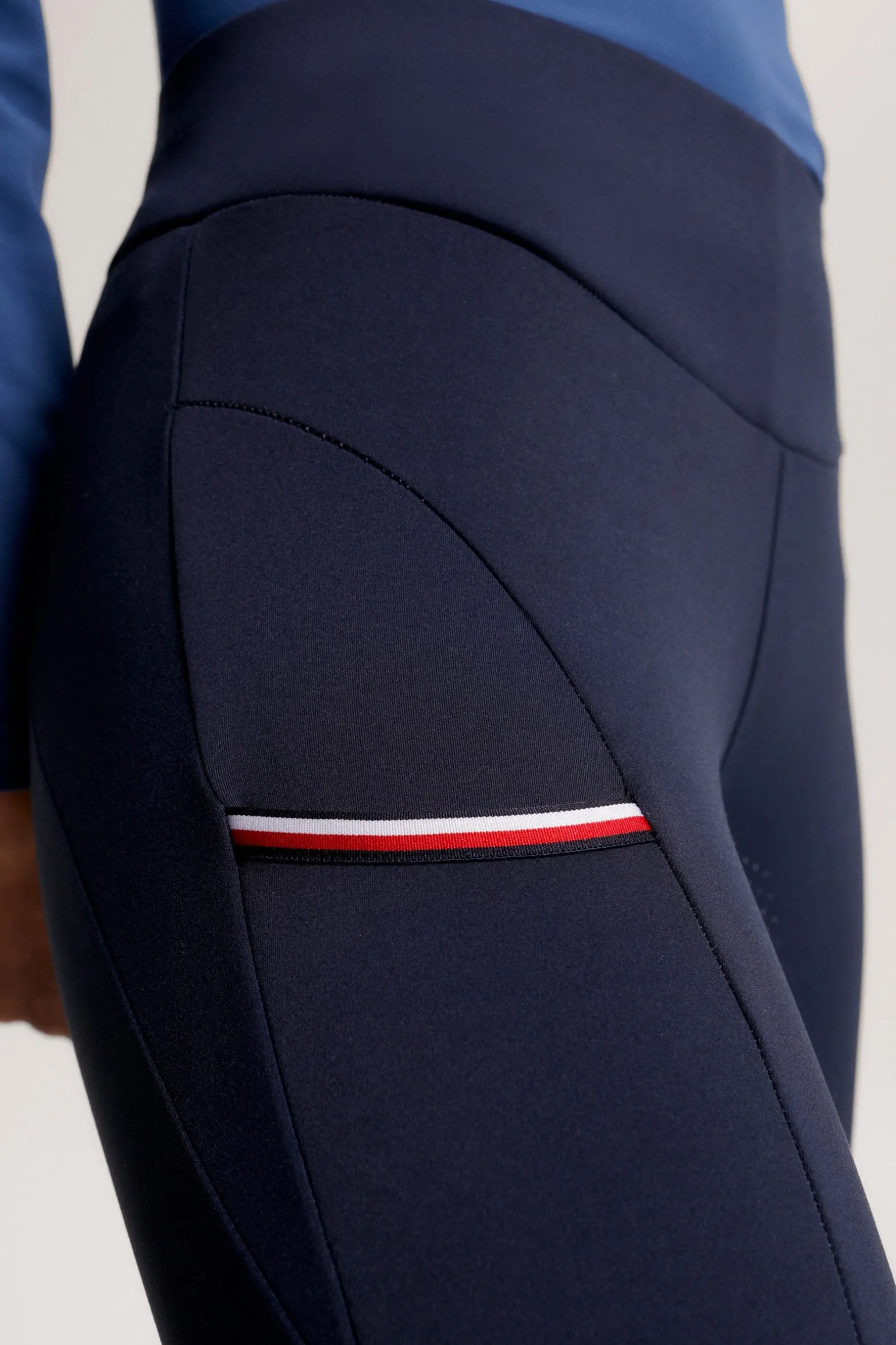 Ein Update der meistverkauften Tommy Hilfiger Logo-Leggings, die Elmira, benannt nach der Stadt, aus der Tommy Hilfigers Gründer stammt. Reite in Wärme und Komfort in dieser superstretchigen Thermo-Leggings mit breitem V-förmigem Bund für perfekte Passform und Formgebung, praktische Handy-Tasche am rechten Oberschenkel und Tommy Hilfiger-Branding am linken Oberschenkel. Mit reaktivem Wärmeausgleichsmaterial, das die Wärme bei wärmeren Temperaturen abgibt und bei kühleren Temperaturen einschließt, und einer gebürsteten Innenseite für zusätzliche Winterwärme.