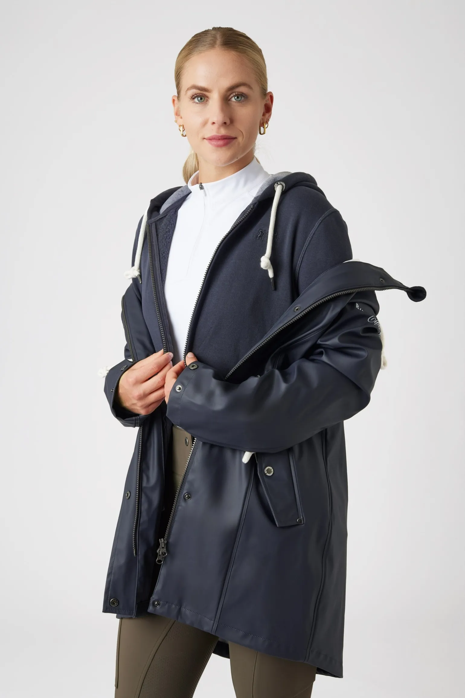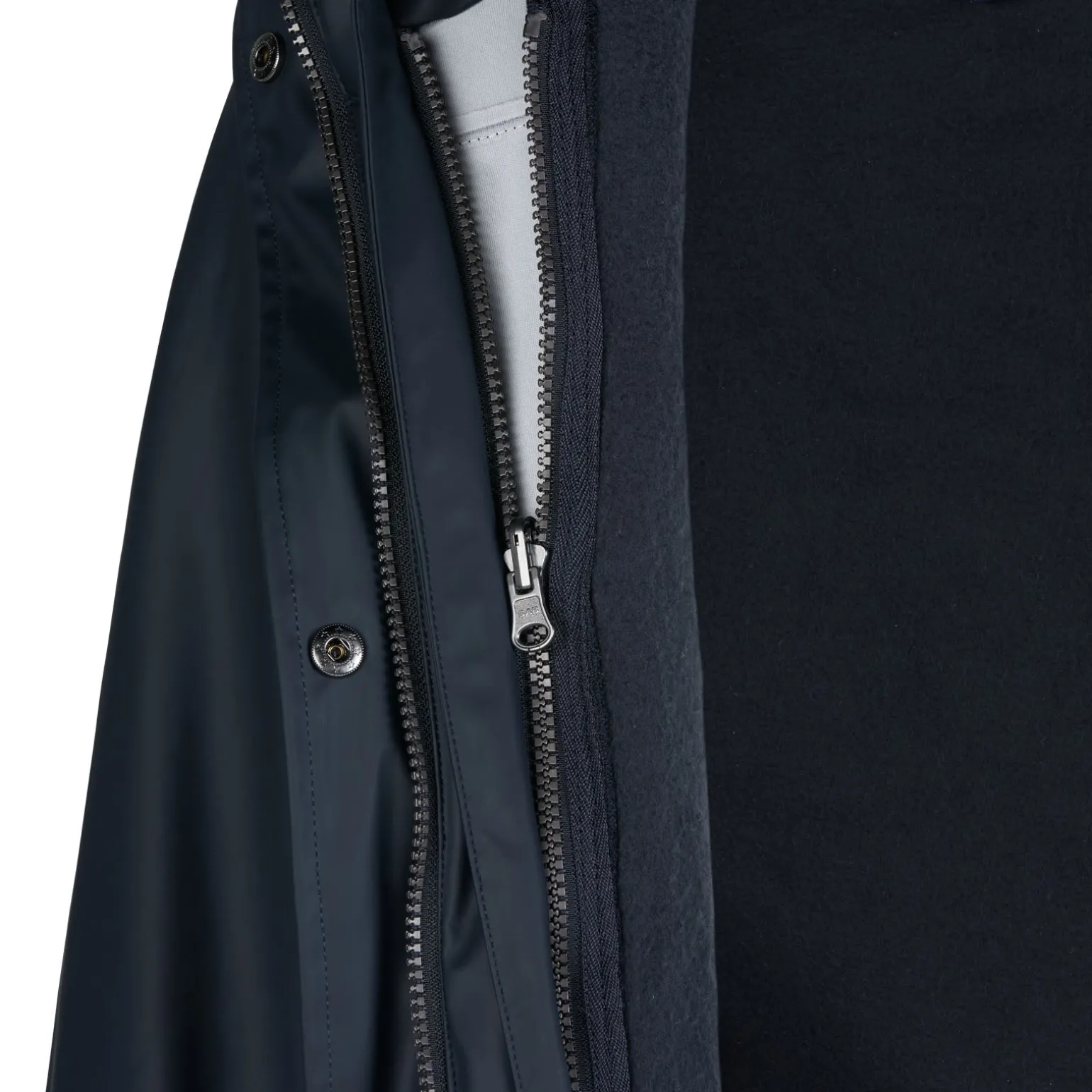 Dieser Regenmantel verfügt innen über einen abnehmbaren Kapuzenpullover. Die äußere Jacke besteht aus wasserfestem Kunstleder mit verschweißten Nähten. Der 2-Wege-Reißverschluss ist super praktisch und zwei Taschen mit Druckknöpfen bieten Platz für deine Habseligkeiten. Verstellbare Schnüre an Kapuze und Taille sorgen für die perfekte Passform. Das innere Sweatshirt ist aus weichem Stoff mit Fleecefutter hergestellt und mit Reißverschluss und zwei Taschen ausgestattet. Beide Produkte sind mit Logodetails verziert.