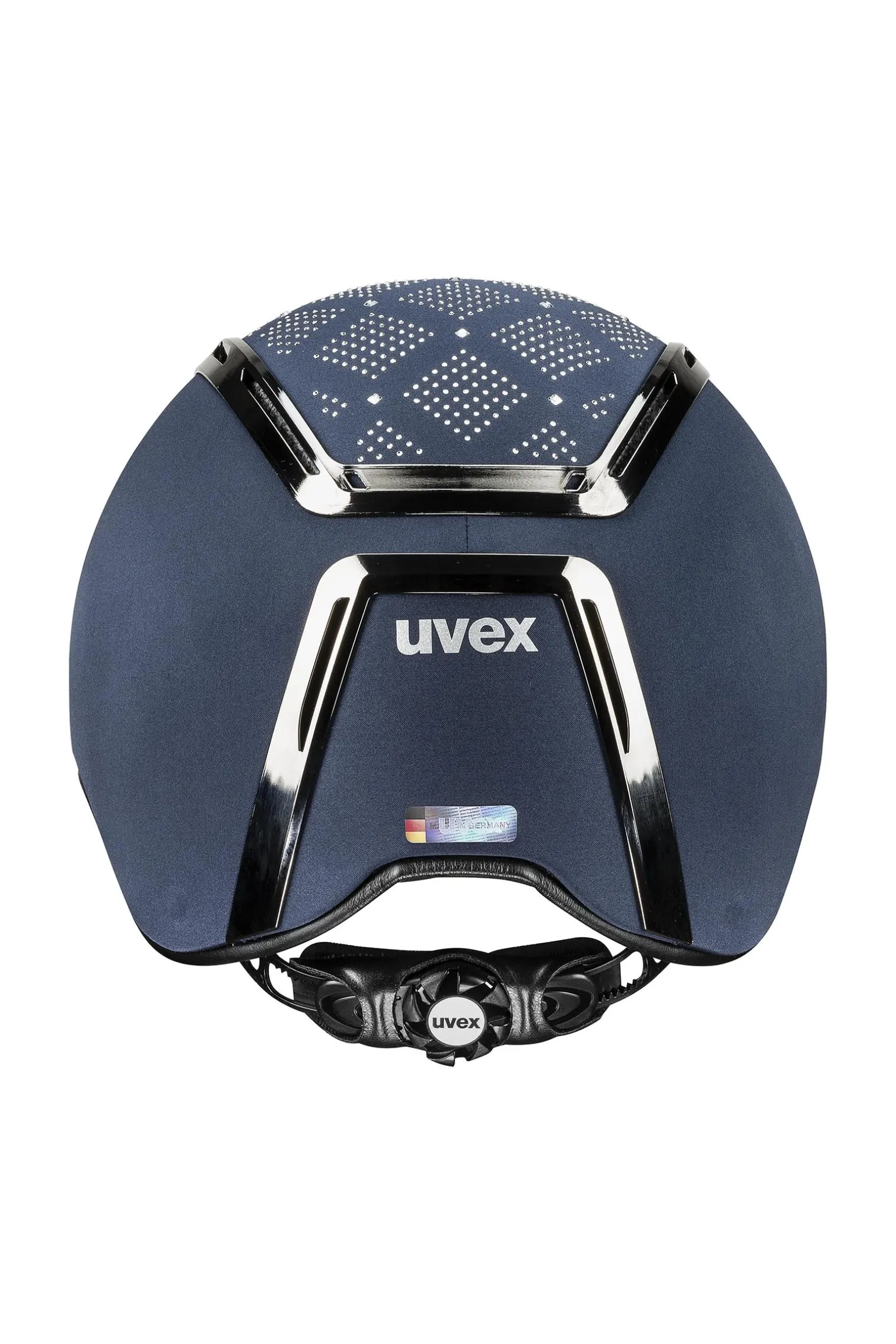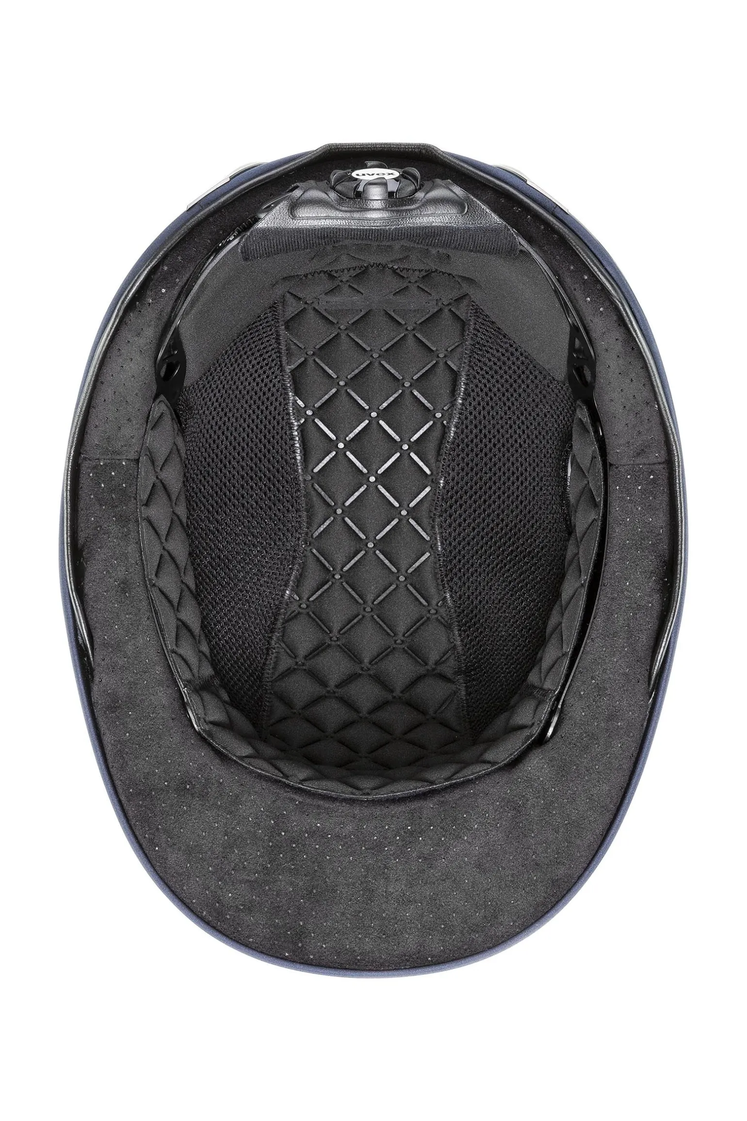 Matter Satin und dezenter Swarovski®-Glamour kennzeichnen diesen exklusiven Reithelm. Mehr als 1.000 Swarovski®-Kristalle in der Farbe crystal clear, umgeben von einem Chromrahmen in metal-black, sind hier der Hingucker. Der Reithelm schützt nach neuesten Standards, ist ausgezeichnet belüftet und sitzt perfekt. Dafür sorgt die integrierte 3D IAS Größenanpassung in Kombination mit dem neuen verstellbaren Y-Verteiler mit veganen Ledergurtbändern. Eine gute Wahl für Reiterinnen mit höchsten Ansprüchen und einem Sinn für hochwertige Details.