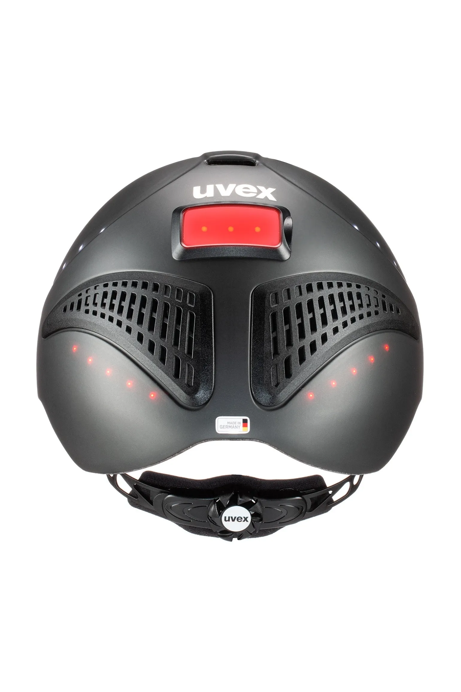Sichtbar und sicher! Der uvex exxential II LED ist der erste uvex Reithelm mit innovativer Helmbeleuchtung. Die integrierten LED-Spots (seitlich weiß, hinten rot) sind im Ruhezustand nicht zu sehen und werden mit einem Knopfdruck aktiviert. Besonders praktisch: Der sportliche Allrounder erfüllt die Reit- und Radhelmnorm, so dass Reiter:innen, die mit dem Rad zum Stall fahren, stets perfekt geschützt sind.