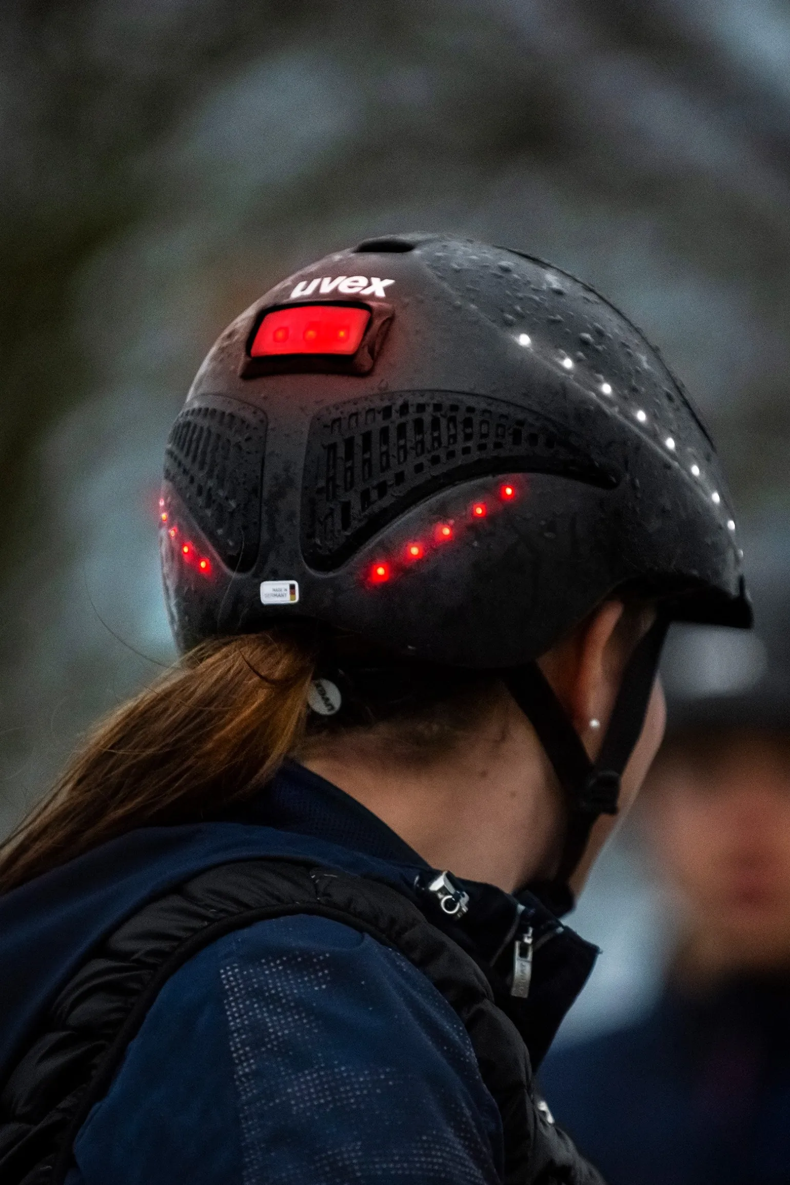 Für Reiter:innen, die bei einem Ausritt in den Abendstunden auf alles vorbereitet sein wollen, ist der uvex exxential II LED der perfekte Helm. Die passive Helmbeleuchtung ersetzt zwar keine Stirnlampe, die den Weg ausleuchtet, erhöht aber deutlich die Sichtbarkeit des:der Reiters:in in der Dämmerung und verbessert damit die allgemeine Sicherheit. Bei Bedarf stehen drei Beleuchtungsmodi zur Verfügung: konstant, blinkend und pulsierend. Die Steuerung erfolgt über ein Plug-In LED mit Magnethaftung am Hinterkopf. Dieses dient als zusätzliches Rücklicht und beinhaltet auch die Akkuanzeige. Je nach Modus hält eine Ladung zwischen 6 bis 12 Stunden. Der sehr leichte Inmould-Helm überzeugt darüber hinaus mit ergonomischem Design und einer tiefergeschnittenen Hinterkopfpartie. Die millimetergenaue Anpassung in Höhe und Weite erfolgt mittels 3D IAS-System. Das Belüftungssystem sorgt für ein perfektes Helmklima.