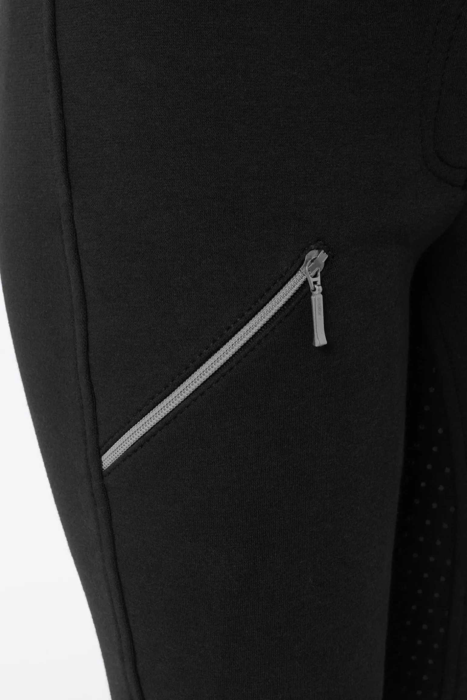 Diese Kinder-Vollbesatzreithose vereint Komfort und Funktionalität und ist die ideale Wahl für junge Reiter. Das weiche Material sorgt für ein angenehmes Tragegefühl, während die Gürtelschlaufen eine individuelle Anpassung ermöglichen. Eine praktische Reißverschlusstasche am Oberschenkel bietet schnellen Zugriff auf wichtige Kleinigkeiten. Die elastischen Beinabschlüsse in Kontrastfarbe setzen einen modischen Akzent und gewährleisten einen optimalen Sitz in den Reitstiefeln. Perfekt für das Training und den täglichen Einsatz im Sattel.