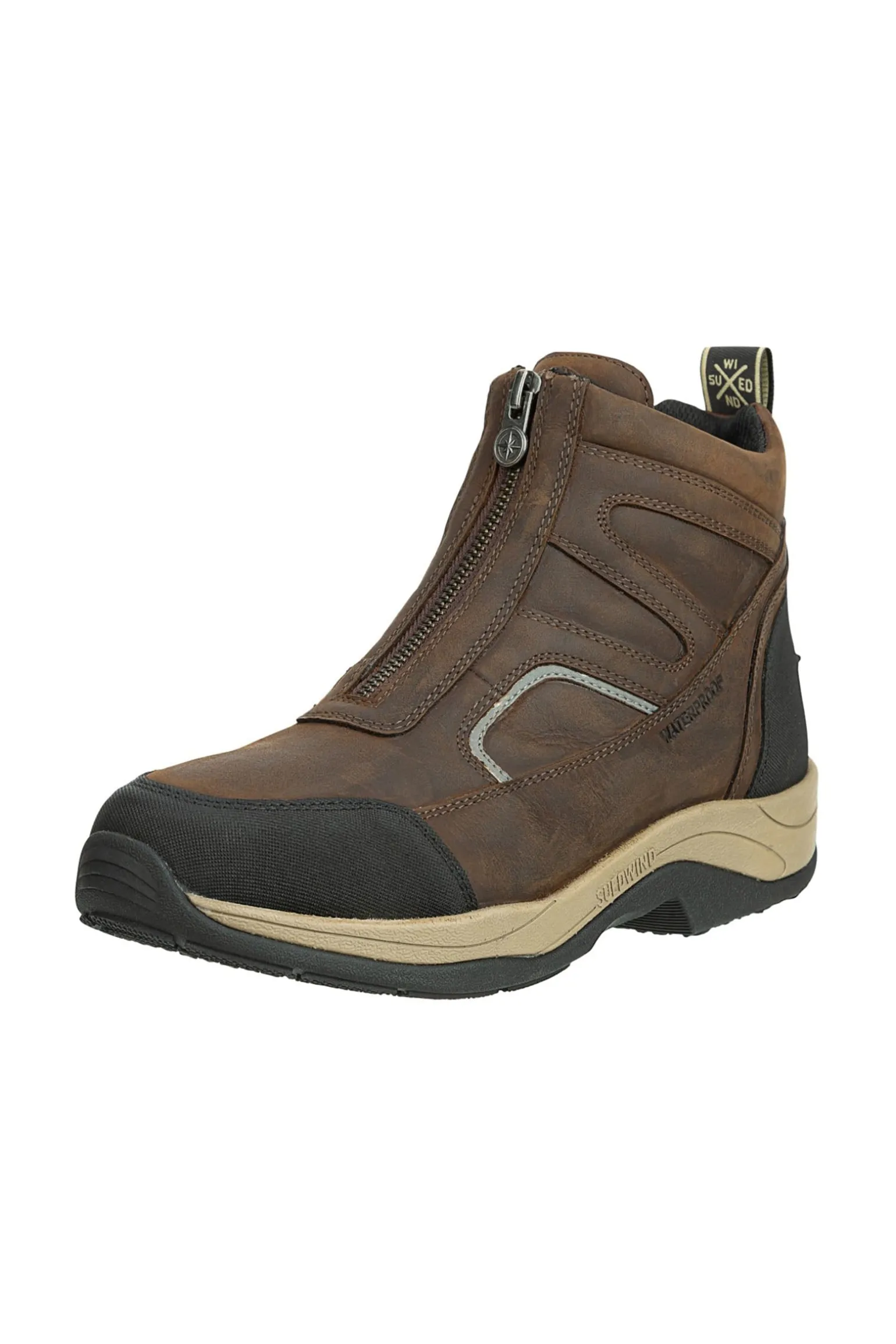Die Suedwind Footwear Field Lace GripFTX Stiefel sind für Langlebigkeit, Komfort und Leistung konzipiert. Sie bestehen aus wasserabweisendem Rindsleder mit atmungsaktivem Micro-DRY Futter, das Feuchtigkeitskontrolle und ganztägigen Komfort bietet. Eine wasserdichte Membran sorgt für trockene Füße bei jedem Wetter, während der YKK® Frontreißverschluss das Anziehen erleichtert. Reflektierende Details verbessern die Sichtbarkeit und die verstärkte Zehen- und Fersenkappe erhöht die Haltbarkeit. Die OrthoLite® Innensohle bietet hervorragende Dämpfung, ergänzt durch eine thermoplastische Verstärkung für Stabilität. Mit der GripFTX Sohlentechnologie bieten diese Stiefel optimalen Halt und Unterstützung bei jedem Ritt.
