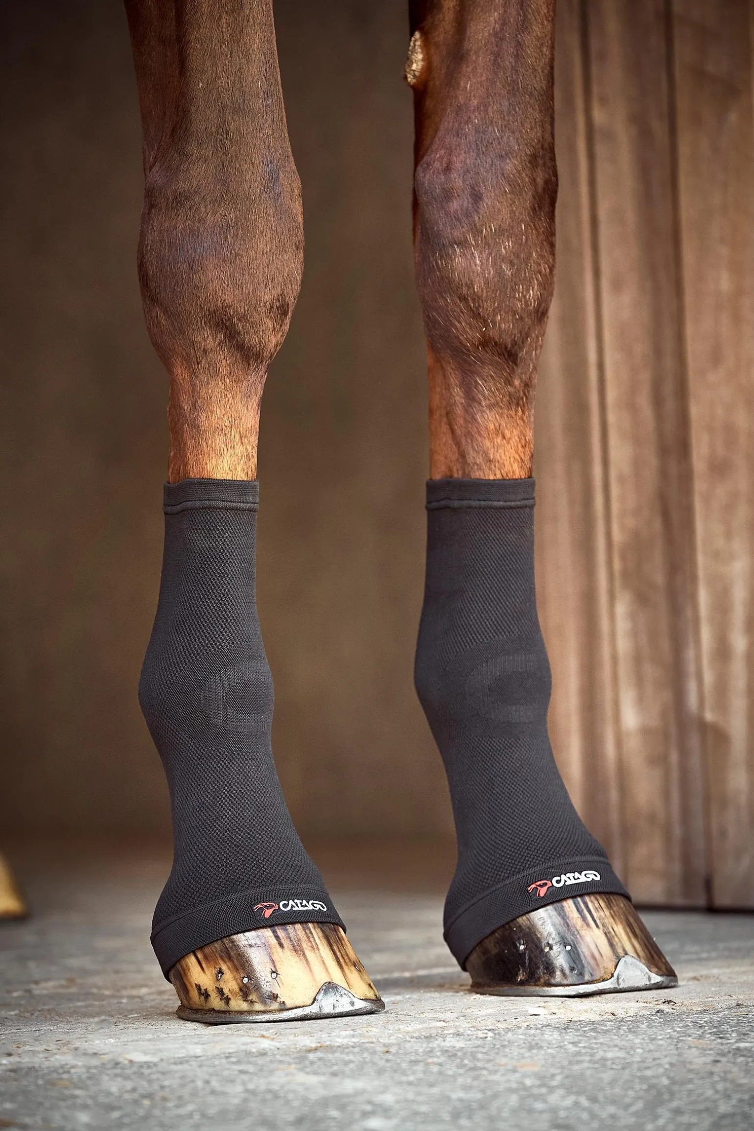 Die CATAGO FIR-Tech Fesselkopfsocken sind Kompressionssocken für dein Pferd mit FIR-Tech-Effekt. Die Fesselkopfsocken haben eingewebte Keramikpartikel, die die körpereigene Wärme des Pferdes als Infrarotstrahlung reflektieren. Dadurch wird die Blutzirkulation erhöht, Sehnen und Gelenke werden geschmeidig gehalten und Erholungsphasen können verkürzt werden. Mit ihrem Kompressionseffekt sind die Socken sehr gut für Pferde geeignet, die z.B. beim Transport oder nachts in der Box zu geschwollenen Beinen neigen. Die Socken können einzeln oder zusammen mit Stallgamaschen oder Bandagen verwendet werden. Die Fesselkopfsocken sollten nach langen Transporten oder nachts in der Pferdebox ausgezogen werden.
