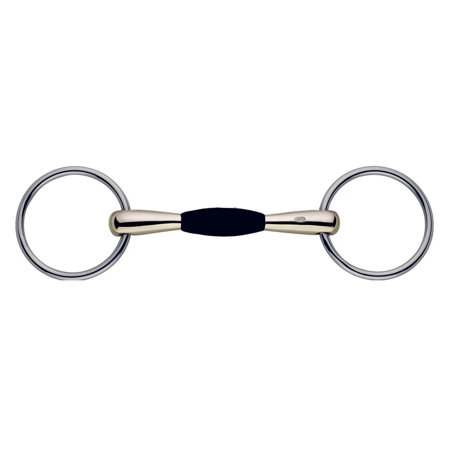 Das Flex Control ist ein einfach gebrochenes Gebiss, bei dem das Gelenk mit einem flexiblen Überzug geschützt ist, damit empfindliche Maulpartien bei besonders sensiblen Pferden nicht mit hartem Metall in Kontakt kommen. Die Beweglichkeit des Gummiteils ermöglicht es auch bei schwierigen, sensiblen Pferden eine optimale Durchlässigkeit und Anlehnung zu erreichen.