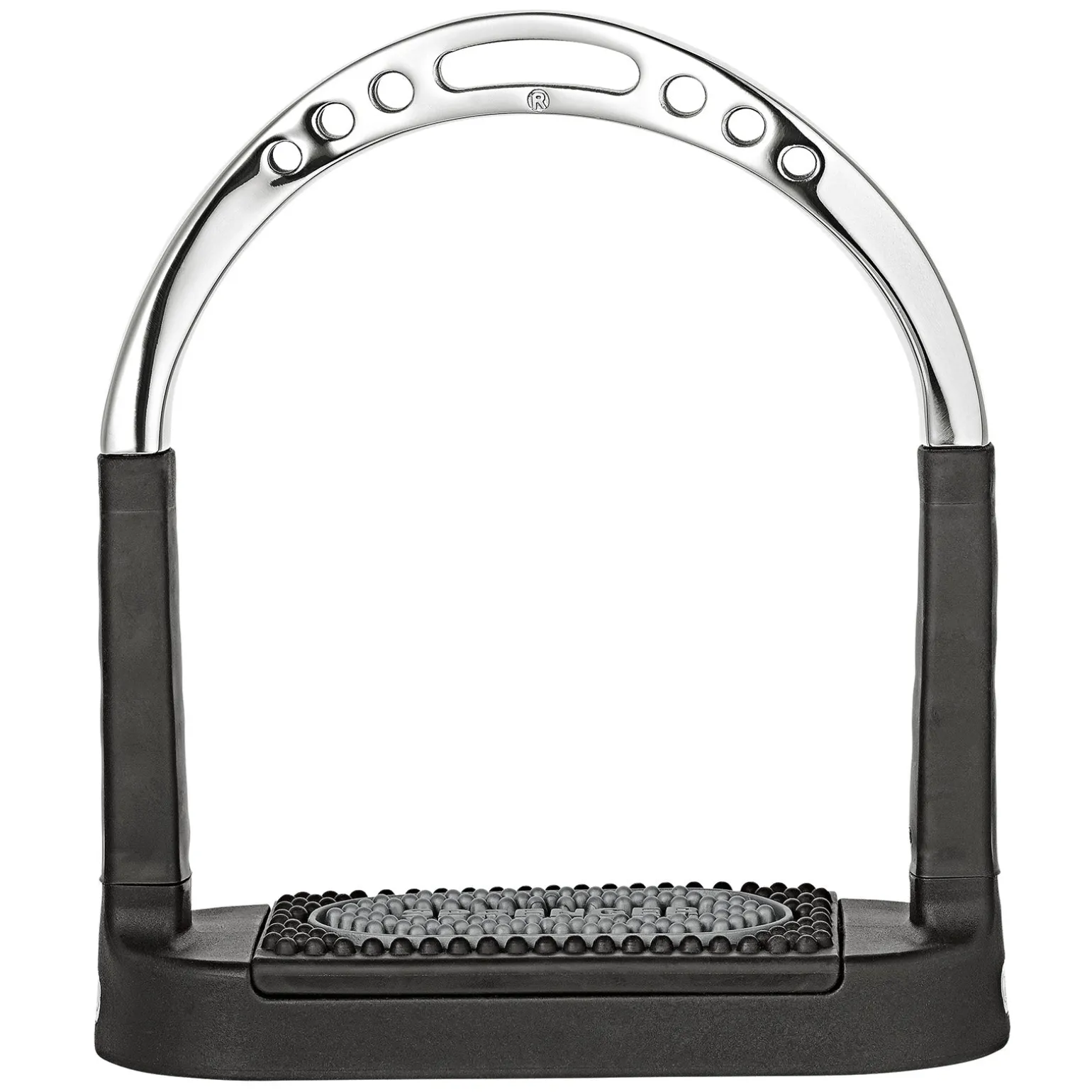 Die neueste Generation der Gelenksteigbügel ist für eine optimale und sichere Schenkel- und Fußlage perfekt ausbalanciert und wirkt stoßdämpfend und schonend für Gelenke, Bänder und Menisken. Die Freigabe des Fußes wird zudem im Falle eines Sturzes erleichtert. Das moderne Design macht den Flexcite Steigbügel in edlem Silber/Schwarz zum Topmodell der Gelenksteigbügel.
