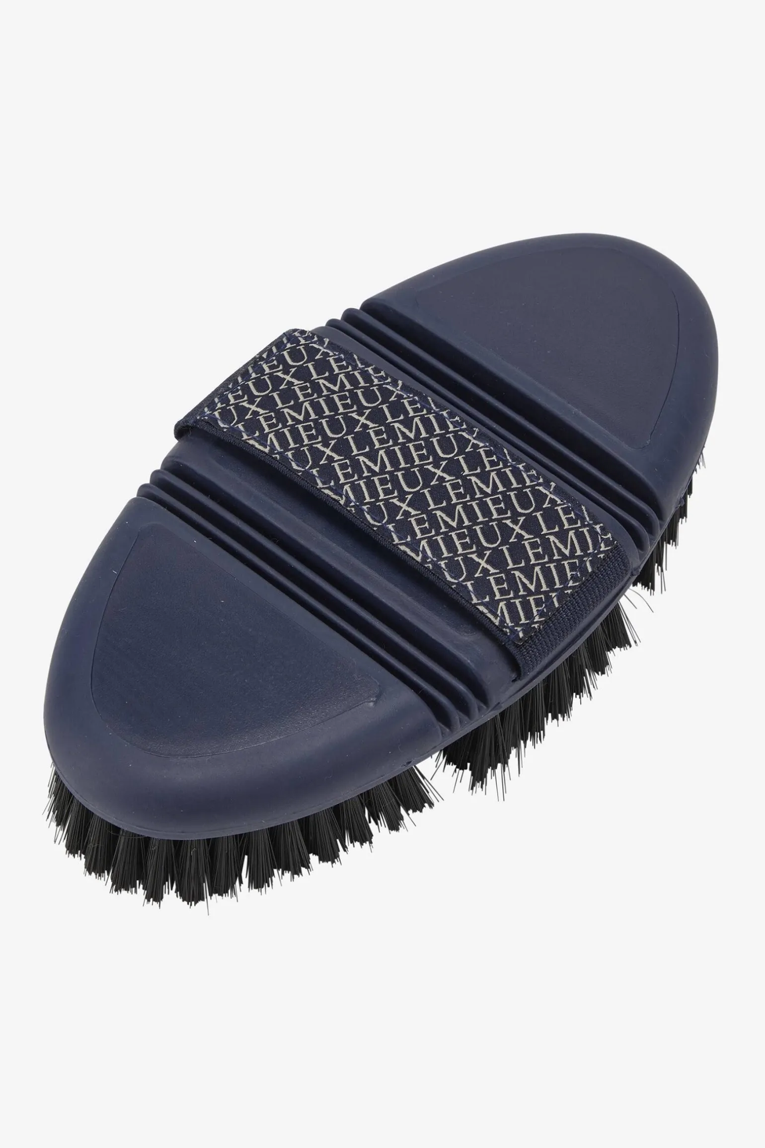 Die synthetischen Borsten der LeMieux Flexi Soft Body Brush sorgen für eine komfortable, aber effiziente Reinigung, wobei das flexible Design es ermöglicht, fast jede Stelle des Pferdekörpers zu erreichen.