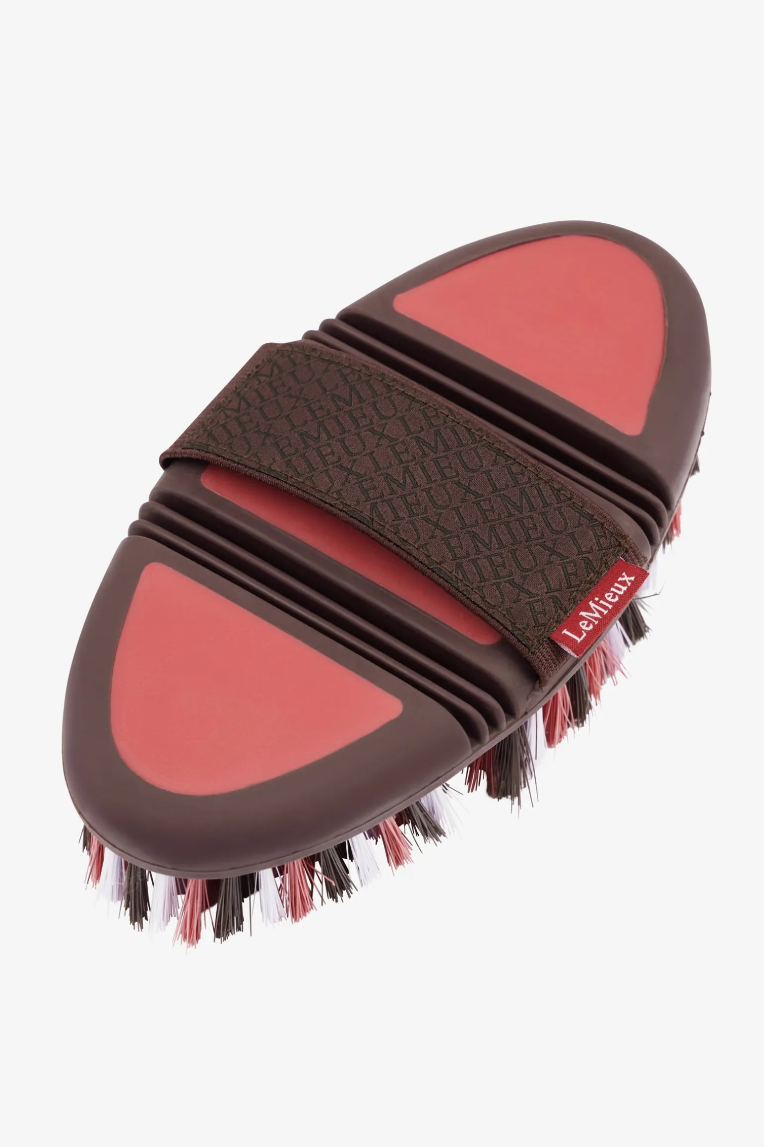Die synthetischen Borsten der LeMieux Flexi Soft Body Brush sorgen für eine komfortable, aber effiziente Reinigung, wobei das flexible Design es ermöglicht, fast jede Stelle des Pferdekörpers zu erreichen.
