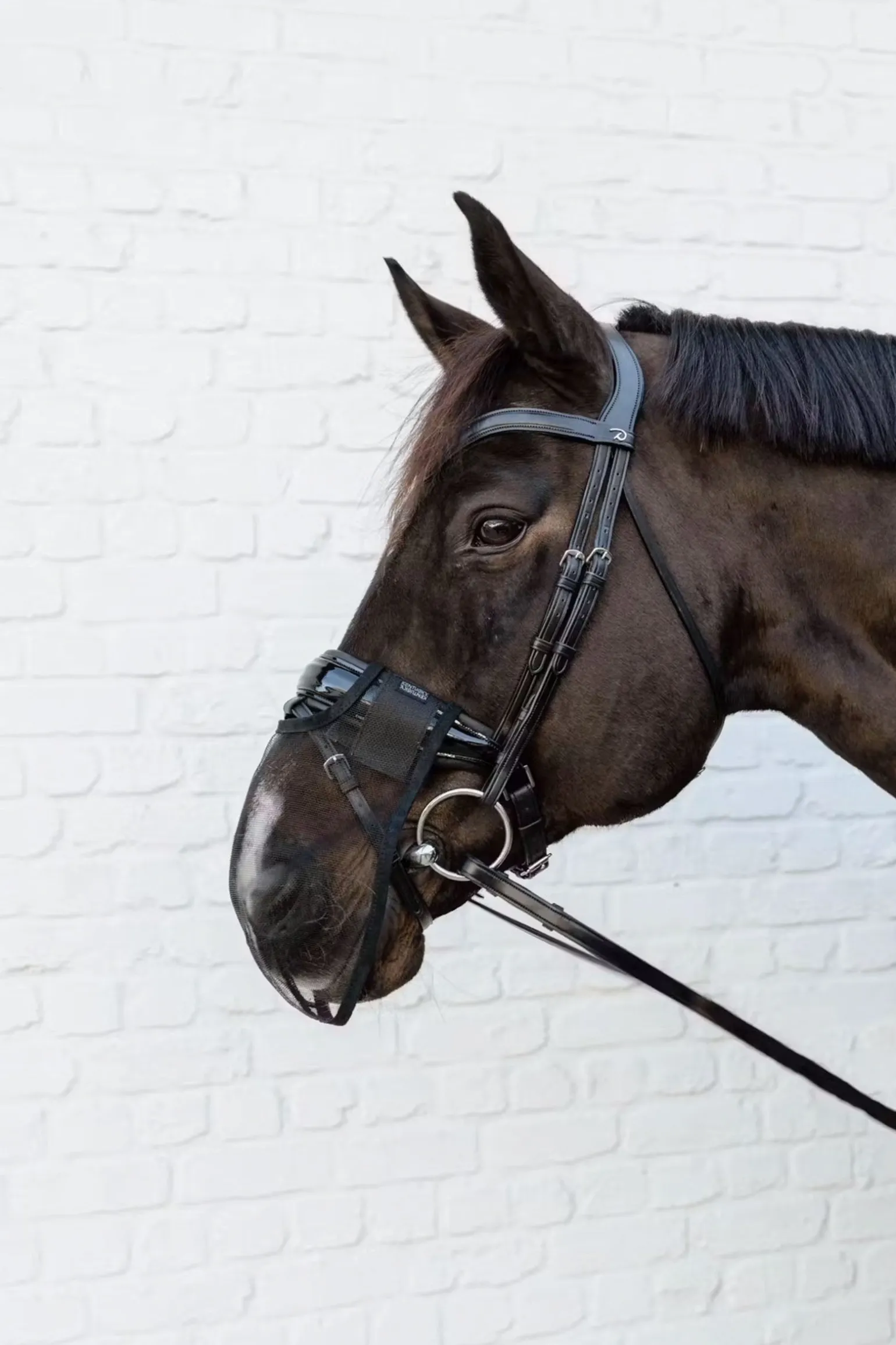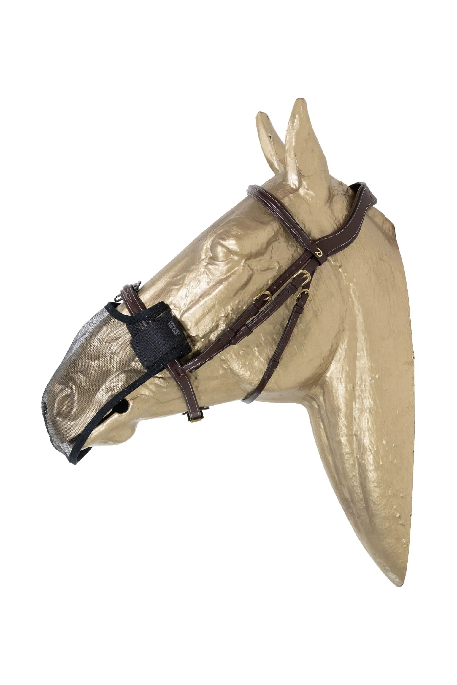 Der Anti-Fly-Nüsternschutz ist ideal für Pferde, die extrem empfindlich auf Insekten reagieren. Es kann sowohl im Training als auch auf dem Turnier eingesetzt werden. Das Netz stört weder das Gebiss noch die Atmung des Pferdes. Der Anti-Fly-Nüsternschutz kann sowohl beim Ausritt als auch im Stall in Kombination mit einem Halfter verwendet werden. Der Nüsternschutz ist aus einem widerstandsfähigen Netz gefertigt, das keine Insekten durchlässt, aber dennoch hoch atmungsaktiv ist. Es wird mit 2 Klettverschlüssen am Nasenriemen der Trense befestigt. Aufgrund der anatomischen Form des Anti-Fly-Nüsternschutzes lässt es sich leicht mit verschiedenen Arten von Nasenriemen und Halftern kombinieren.