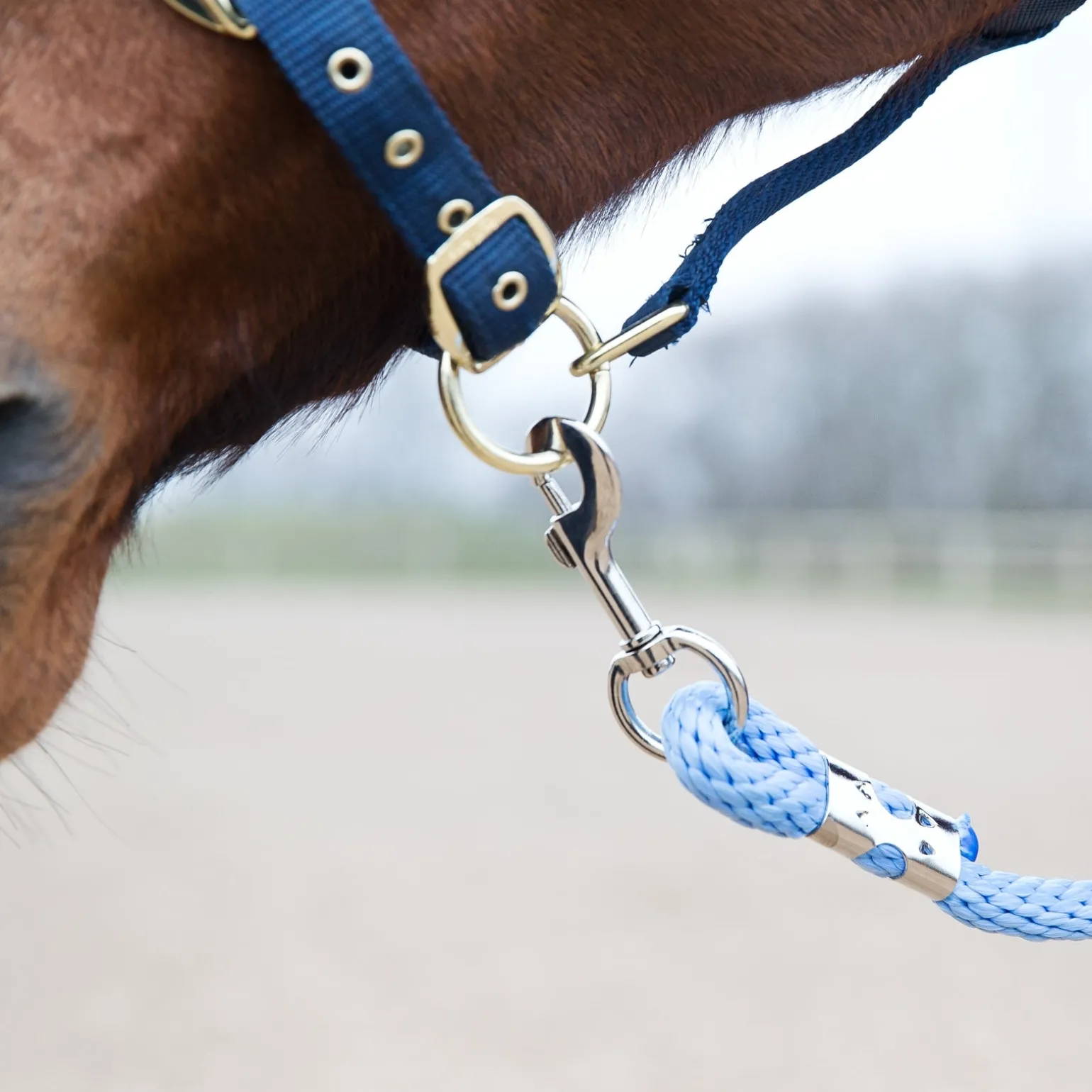 Verwenden Sie diesen langen, weichen Poly-Führstrick mit einem einfachen Karabiner aus einer vernickelten, massivem Stahl und Zink-Legierung, um ihn an einem unserer attraktiven Horze Halfter zu befestigen.