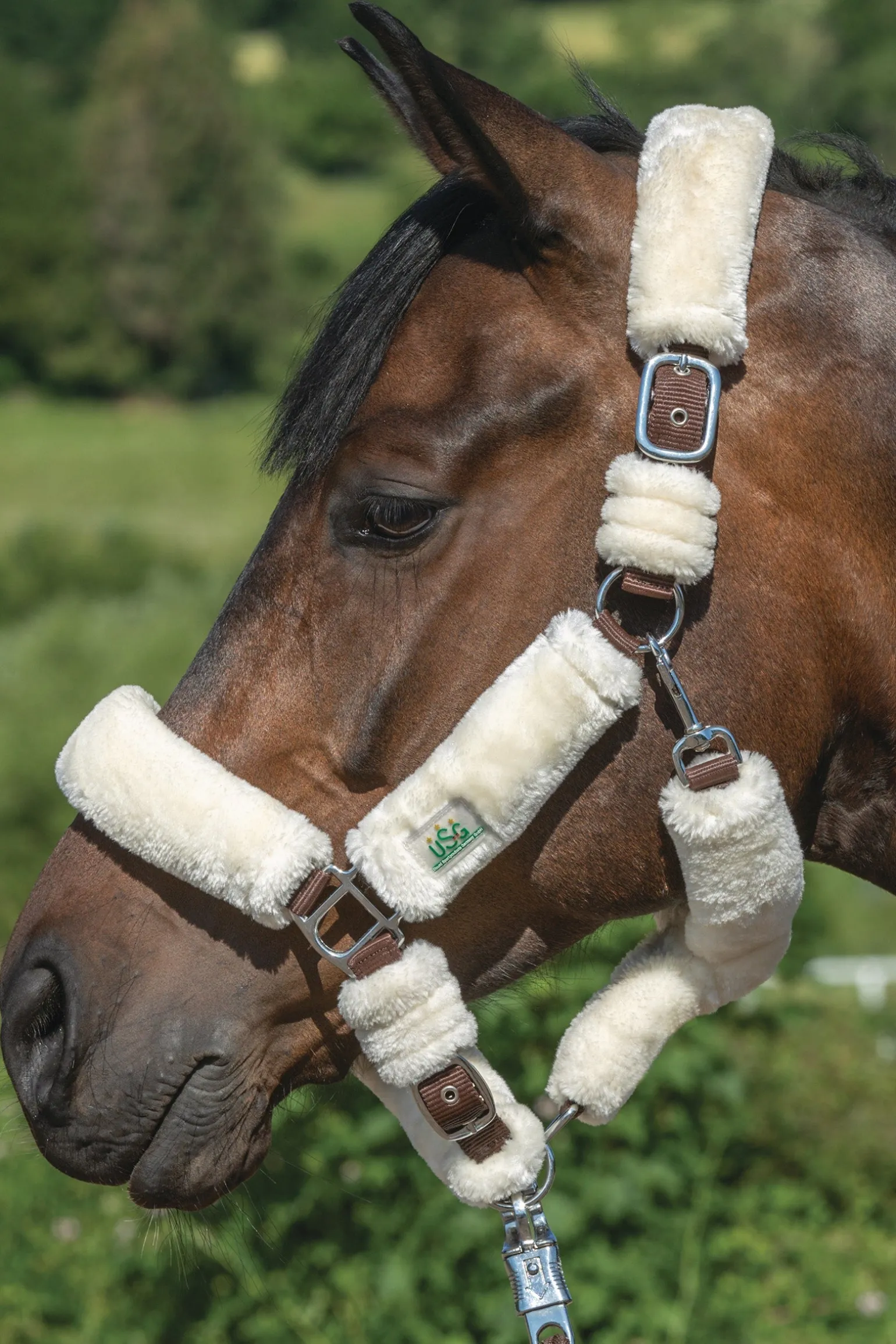 Halfter „Fluffy“ Farbiges Kunststoffhalfter mit kuscheligem Kunstfell ummantelt. Das Halfter hat drei Verstellmöglichkeiten an beiden Seiten des Genickstückes, damit das Fell immer zentriert im Genick liegt sowie am Nasenriemen. Perfekt um die empfindlichen Partien am Pferdekopf vor Scheuerstellen zu schützen insbesondere auf Transporten oder nach dem Scheren Halftermaterial und Kunstfell sind ideal farblich aufeinander abgestimmt. Damit es nicht verrutscht ist das Fell am Halfter fixiert.