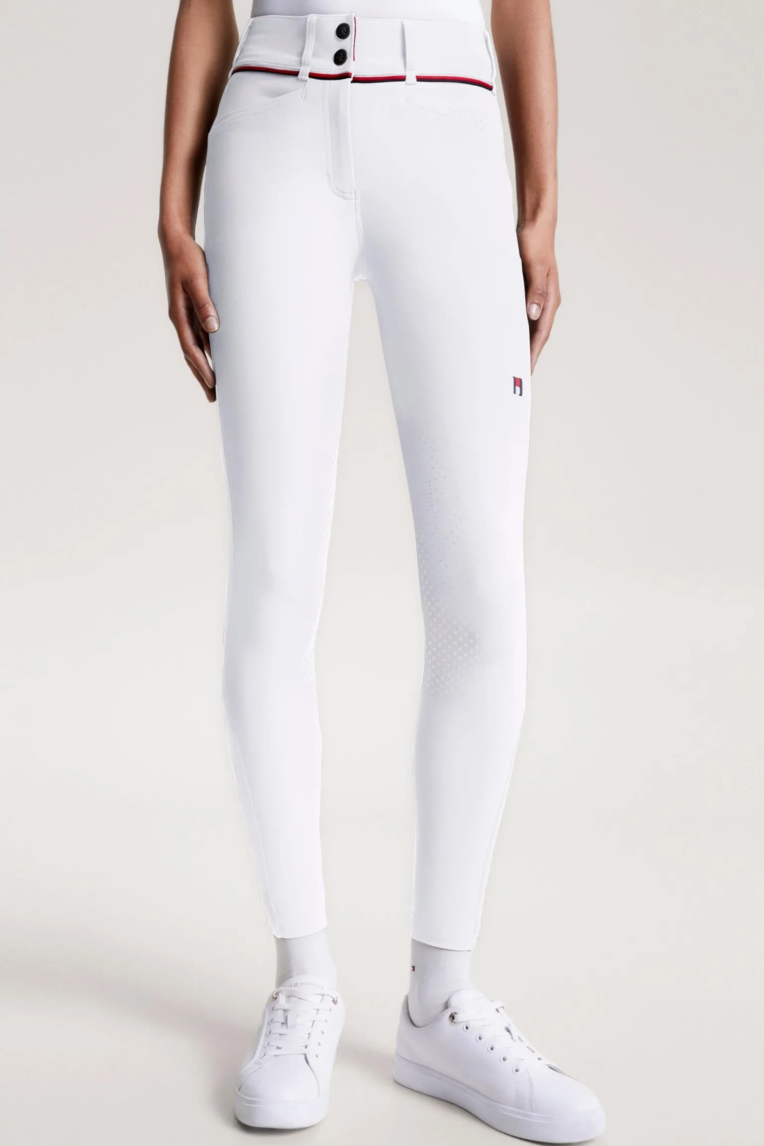 Die Geneva Reithose ist aus einem technischen, wasserabweisenden Power-Stretch-Gewebe mit einem höheren und breiteren Bund für maximalen Reitkomfort. Weicher Jerseysaum für eine sportliche Form und eine dünnere Schicht unter Ihren Stiefeln. Mit gesticktem Logo auf dem linken Oberschenkel, Global Stripe-Band am Münzfach, ‚Hilfiger‘-Stickerei auf der Vordertasche und Silikon Kniebesatz für sicheren Halt im Sattel. Fantastisches Funktionsmaterial mit zahlreichen Funktionen, darunter schnelles Trocknen, Feuchtigkeitsregulierung, UV-Schutz und 4-Wege-Power-Stretch.