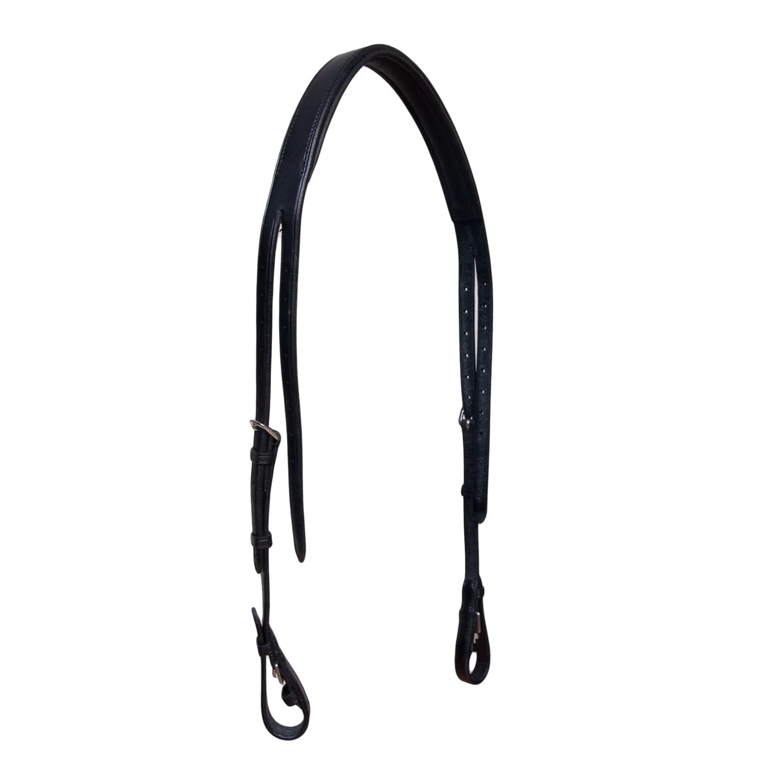 Das Genickstück, auf das der kombinierbare Trensenzaum aufgebaut ist.Mit hochqualitativen Metallbeschlägen und Leder. Basis-Genickstück des kombinierbaren Trensenzaums. Kombinierbare Artikel: 10265 – Nasenriemen oder 10266 – Nasenriemen. 10534 – Stirnriemen optional.