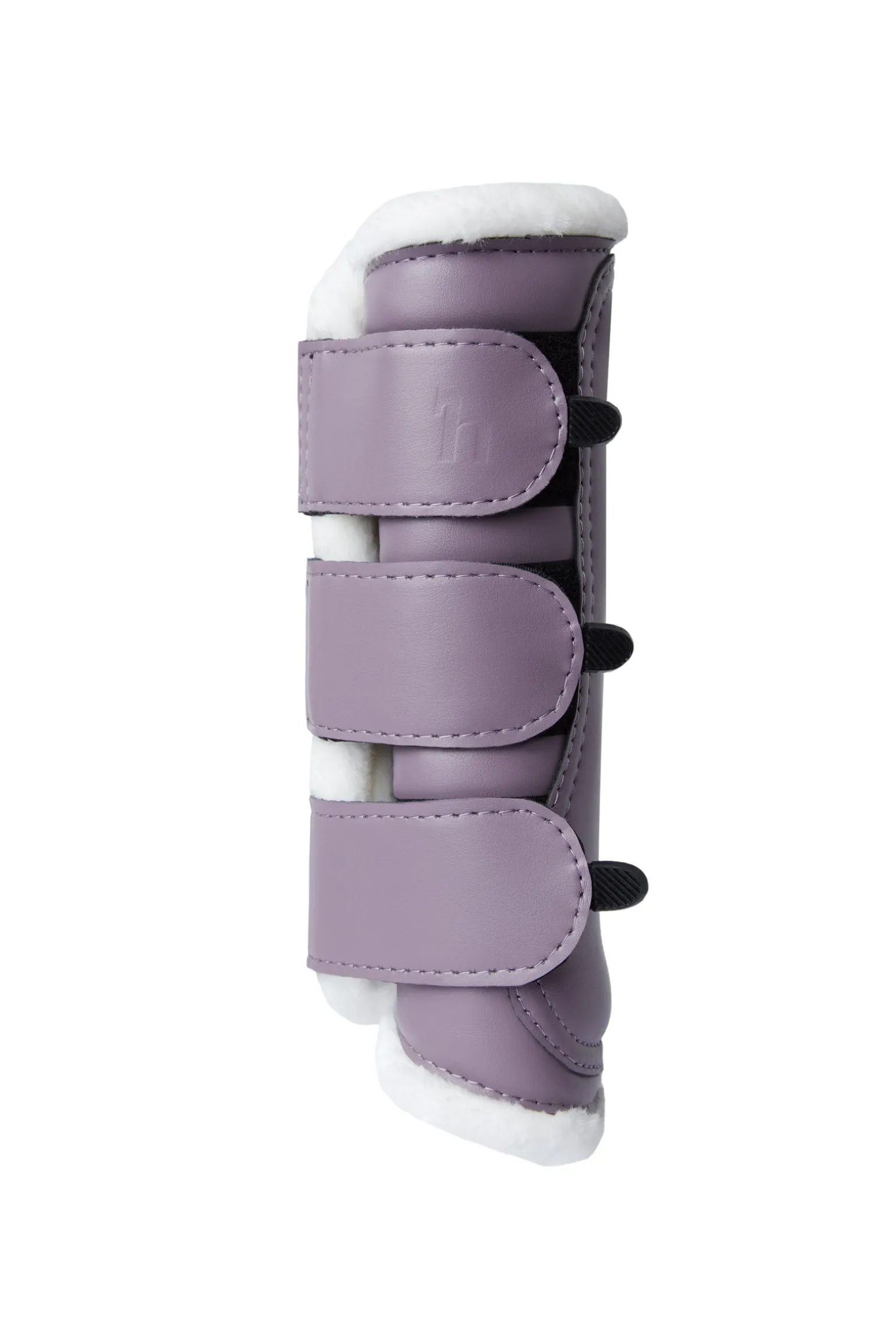 Unsere Horze Gent Gamaschen bestehen aus robustem Außenmaterial mit kuscheligem Kunstfell-Futter. Starke Klettverschlüsse schließen sicher. Kombiniere diese Gamaschen mit unserer Horze Ghent Schabracke und Fliegenhaube für einen kompletten Look!
