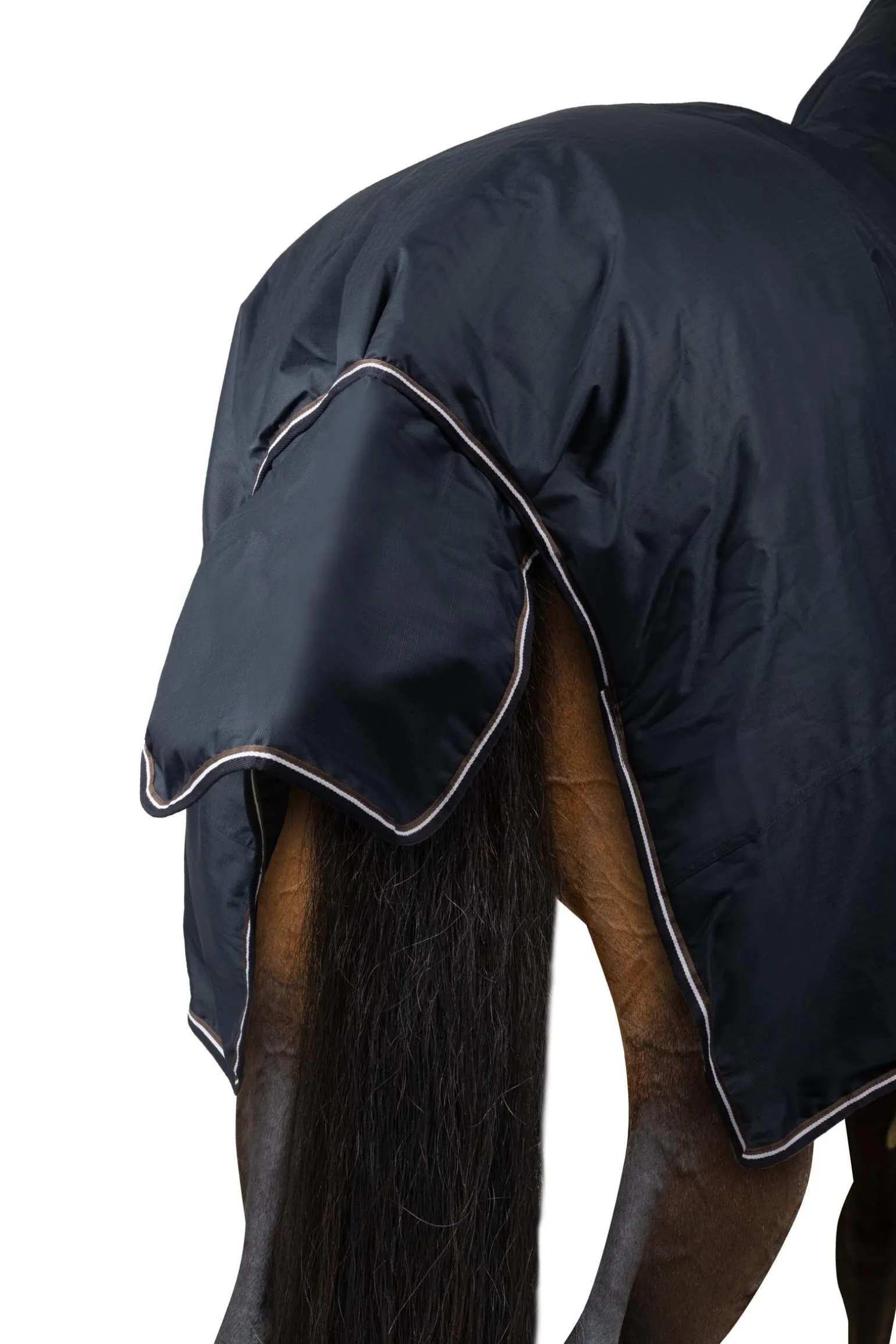 Diese Decke mit Halsteil ist aus wasserdichtem, atmungsaktivem Material gefertigt. Der gute Sitz an Hals und Schultern macht sie bequem und die hohen Gehfalten bieten Bewegungsfreiheit, damit sich dein Pferd austoben kann und nicht eingeschränkt wird. Frontverschlüsse, Kreuzgurte und Beinschnüre halten die Decke sicher an ihrem Platz und verhindern Verrutschen.