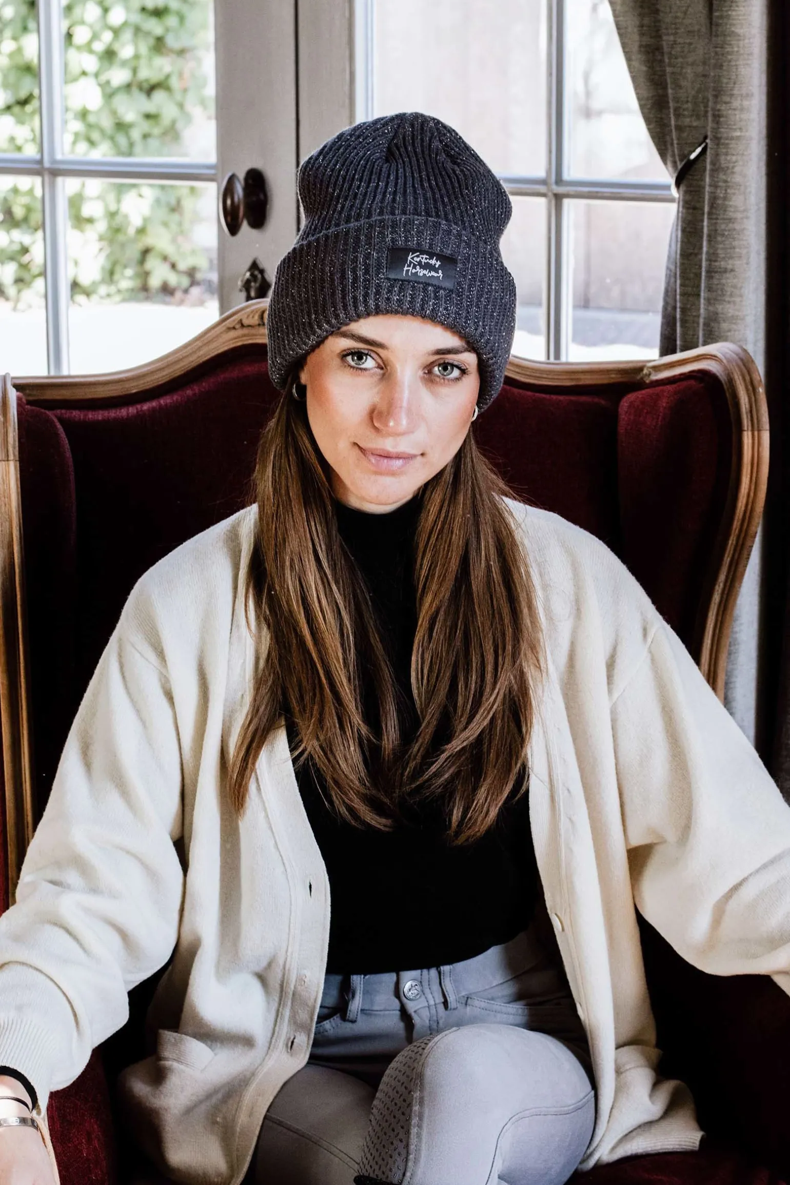 Die Glitzermütze hat die Größe Full und passt den meisten Erwachsenen.