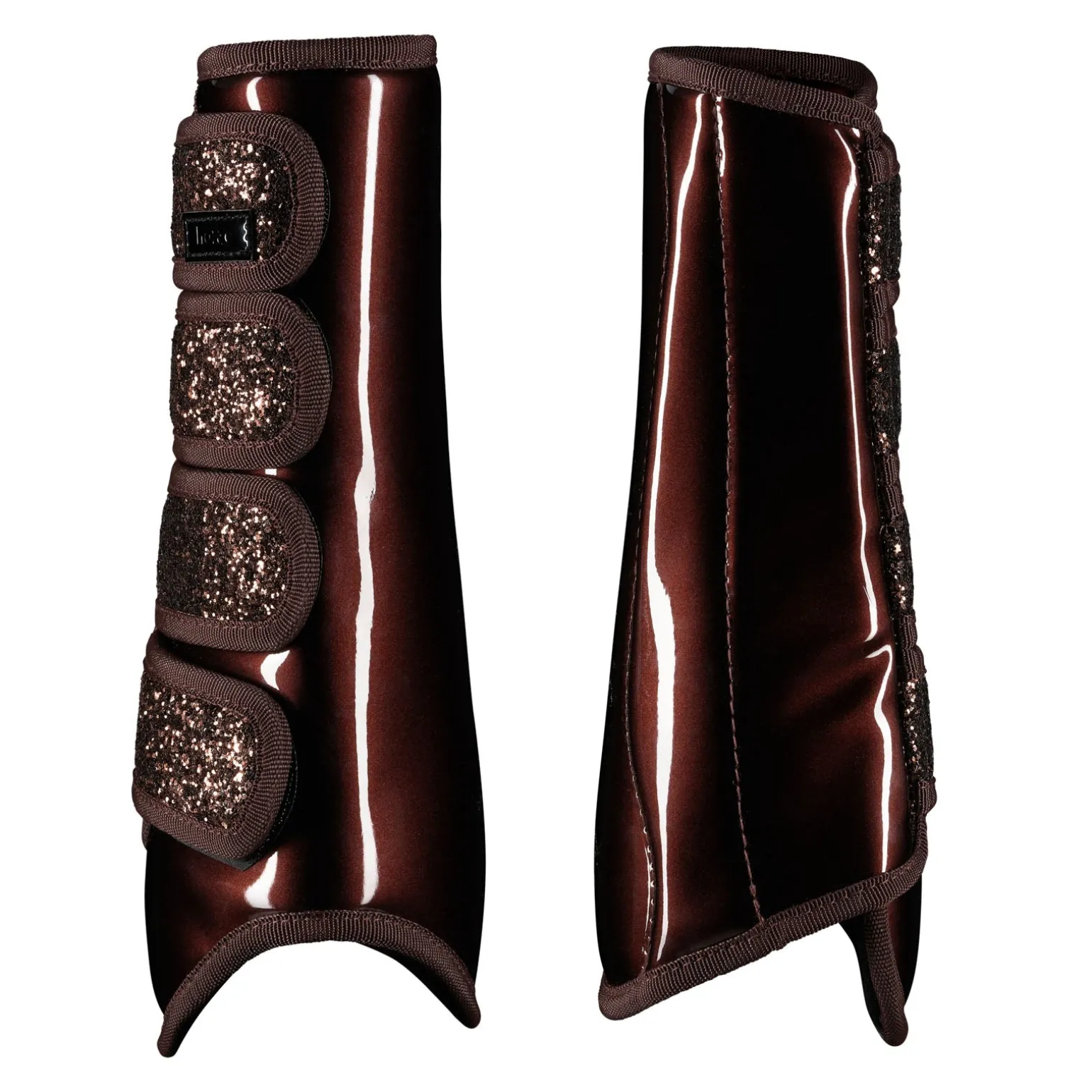 Diese neuen Gamaschen schützen Pferdebeine auf stylische Art und Weise. Das robuste Außenmaterial ist langlebig und schützend und das Futter besteht aus atmungsaktivem Netzmaterial. Starke Klettverschlüsse halten die Gamaschen an ihrem Platz. Für einen glänzenden Look sind sie mit Glitzermaterial überzogen. Kombiniere sie mit den passenden Hufglocken (#19714) für den kompletten Glitzer-Look.
