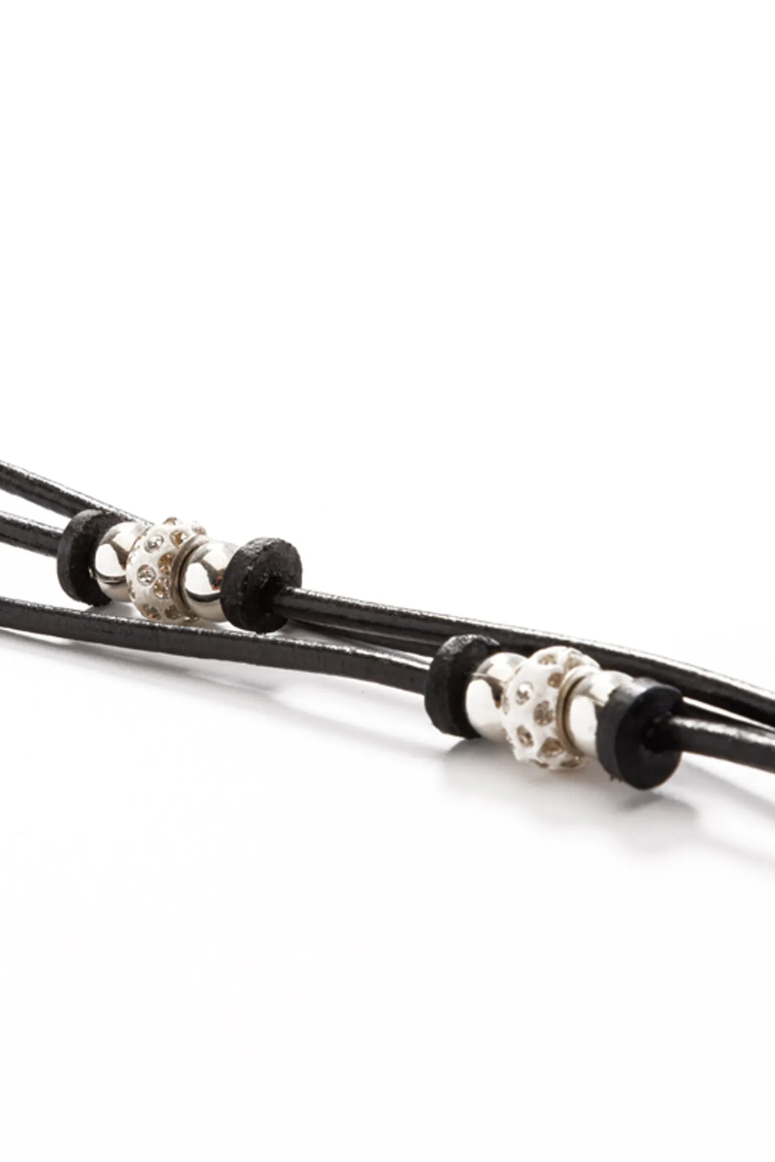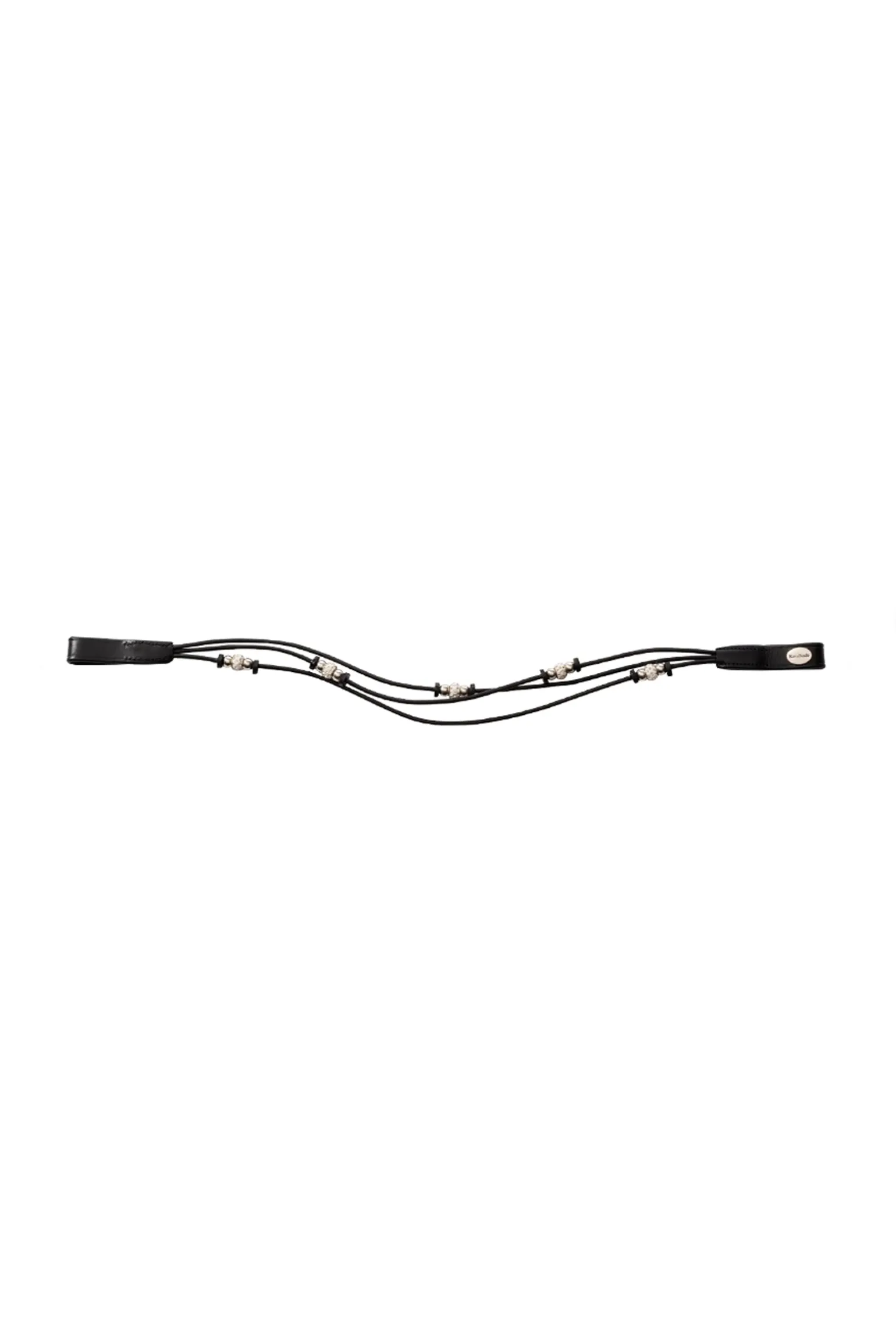 Ein Hingucker am Kopf deines Pferdes – der einzigartige “Grace” Stirnriemen ist wie ein Armband gestaltet, er besteht aus 3 Lederkordeln, die mit silberfarbenen und weißen Elementen verziert sind. Die weißen Elemente enthalten außerdem kleine silberfarbene Strasssteine.