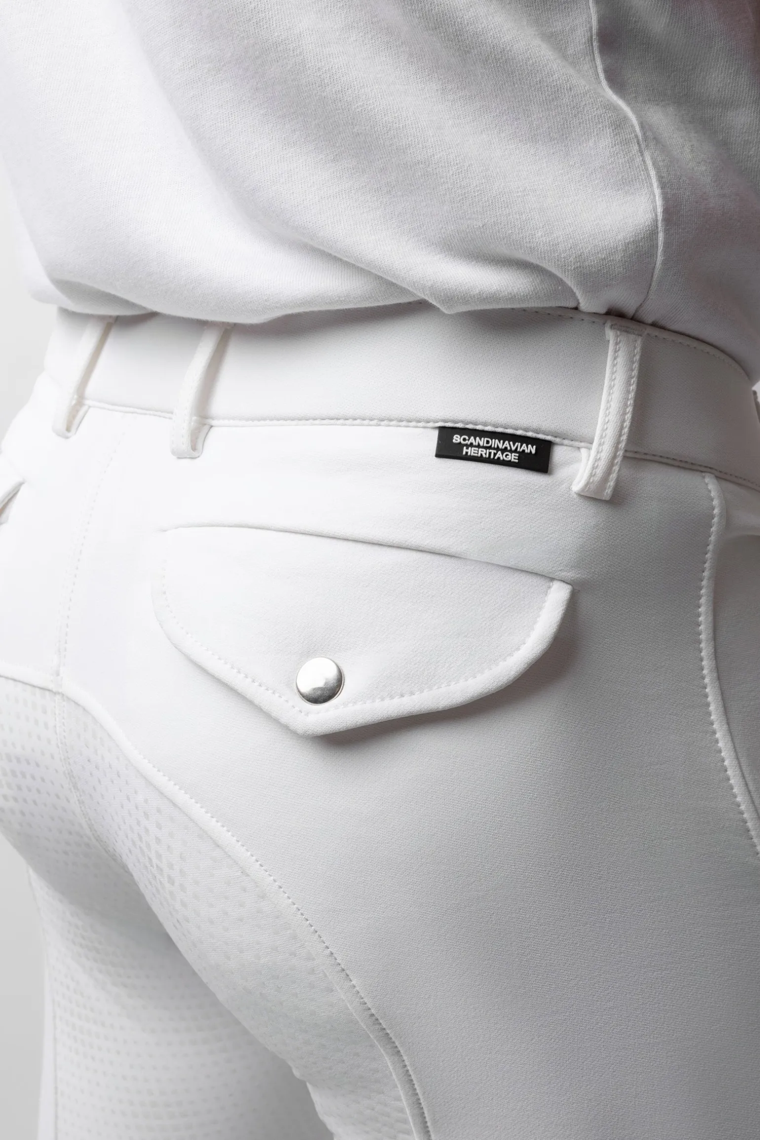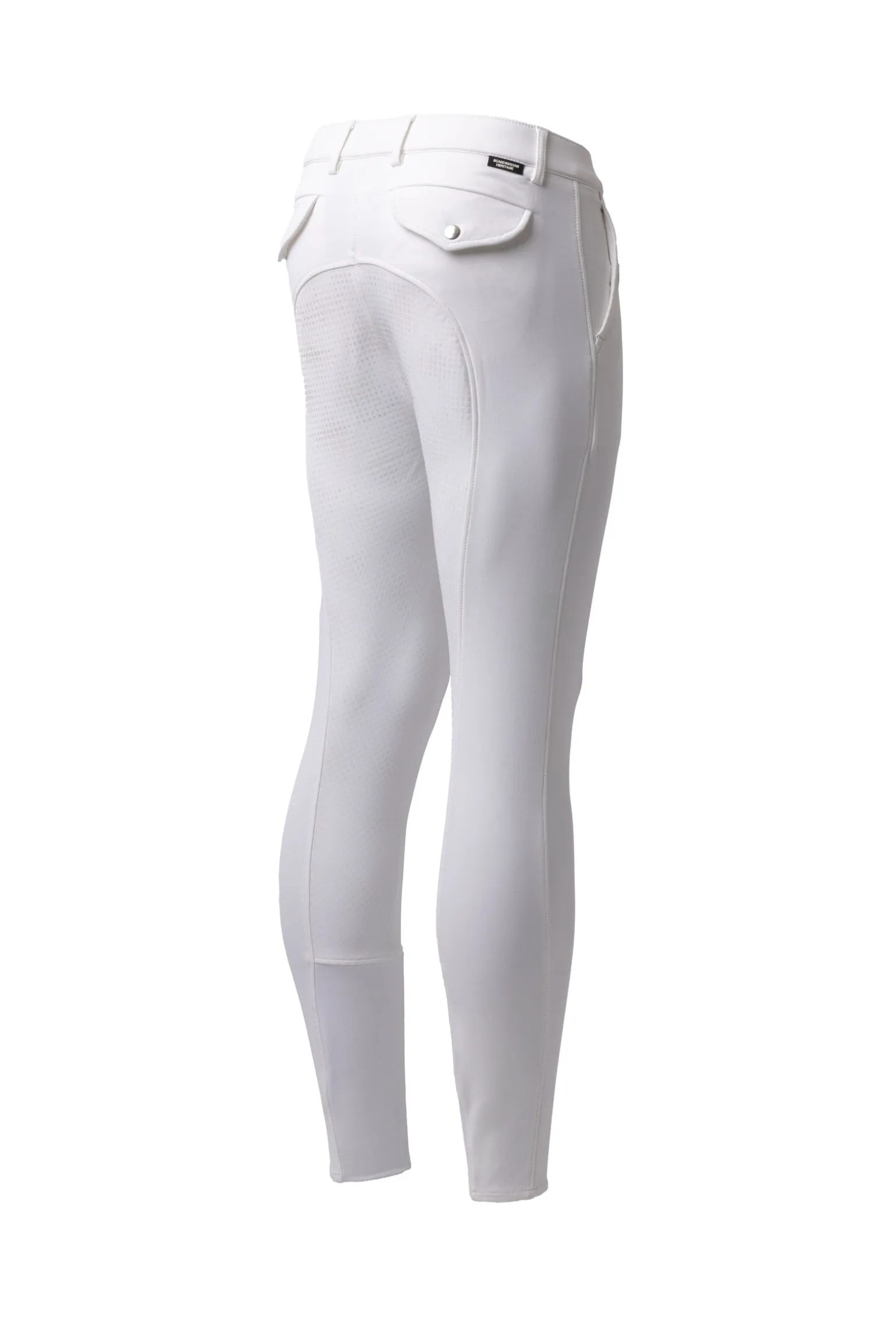 Diese neue Grand Prix Reithose hat einen Vollbesatz, die jetzt einen konturierten Bund für eine bessere Passform hat. Jetzt mit neuen Eigenschaften, atmungsaktivem Gewebe mit wasser- und schmutzabweisender Oberfläche. Ein hochqualitativer Vollbesatz mit Silikon-Aufdruck sorgt für soliden Halt. Die elastischen Beinabschlüsse sorgen für eine enganliegende und bequeme Passform am Sprunggelenk wenn Sie gut sitzende Stiefel tragen.