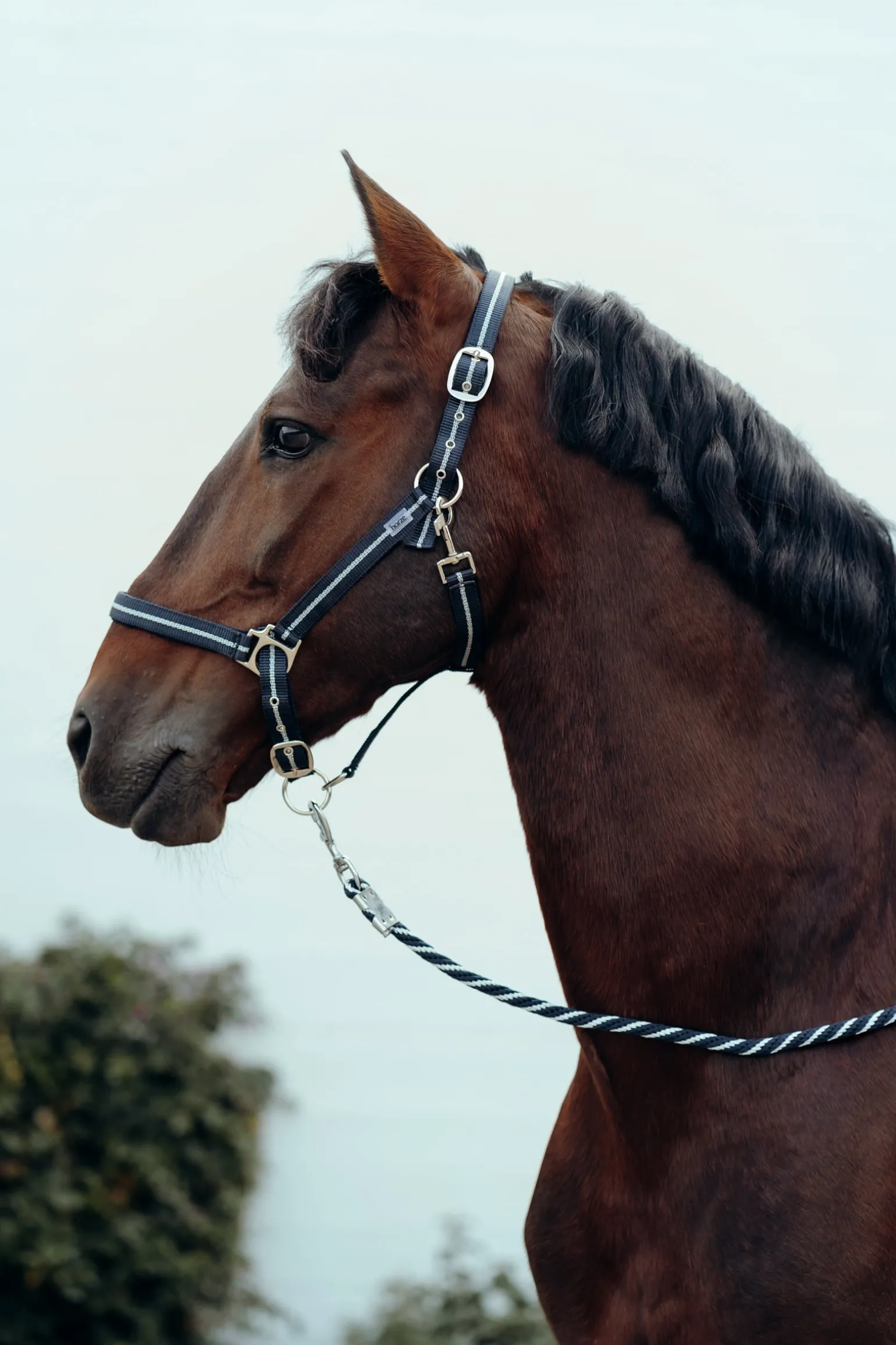 Dieses Set aus Halfter und Führstrick ist in schönen Farben mit tollen metallischen Streifen designed, die zu den Beschlägen passen. Verstellbare Schnallen sorgen für die perfekte Passform. Der starke Karabinerhaken schließt sicher. Der robuste Führstrick liegt leicht in der Hand.