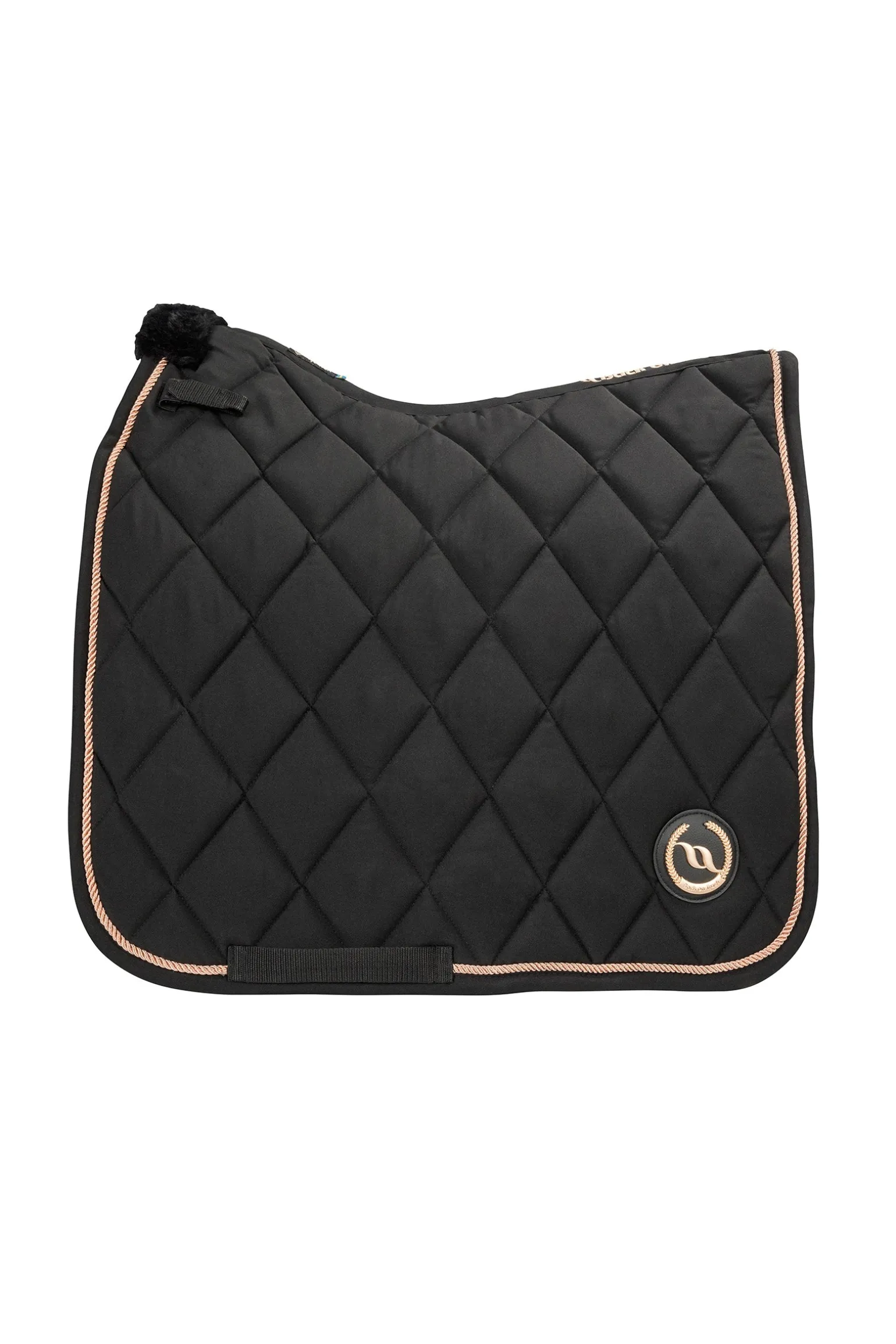 Die neue Schabracke aus einem schönen Melange-Stoff, erhältlich in den Farben Braun und Grau. Der Einfass ist mit einer eleganten Kordel abgesetzt. Auf der Linken Seite befindet sich das Back on Track Logo aus Kunstleder.