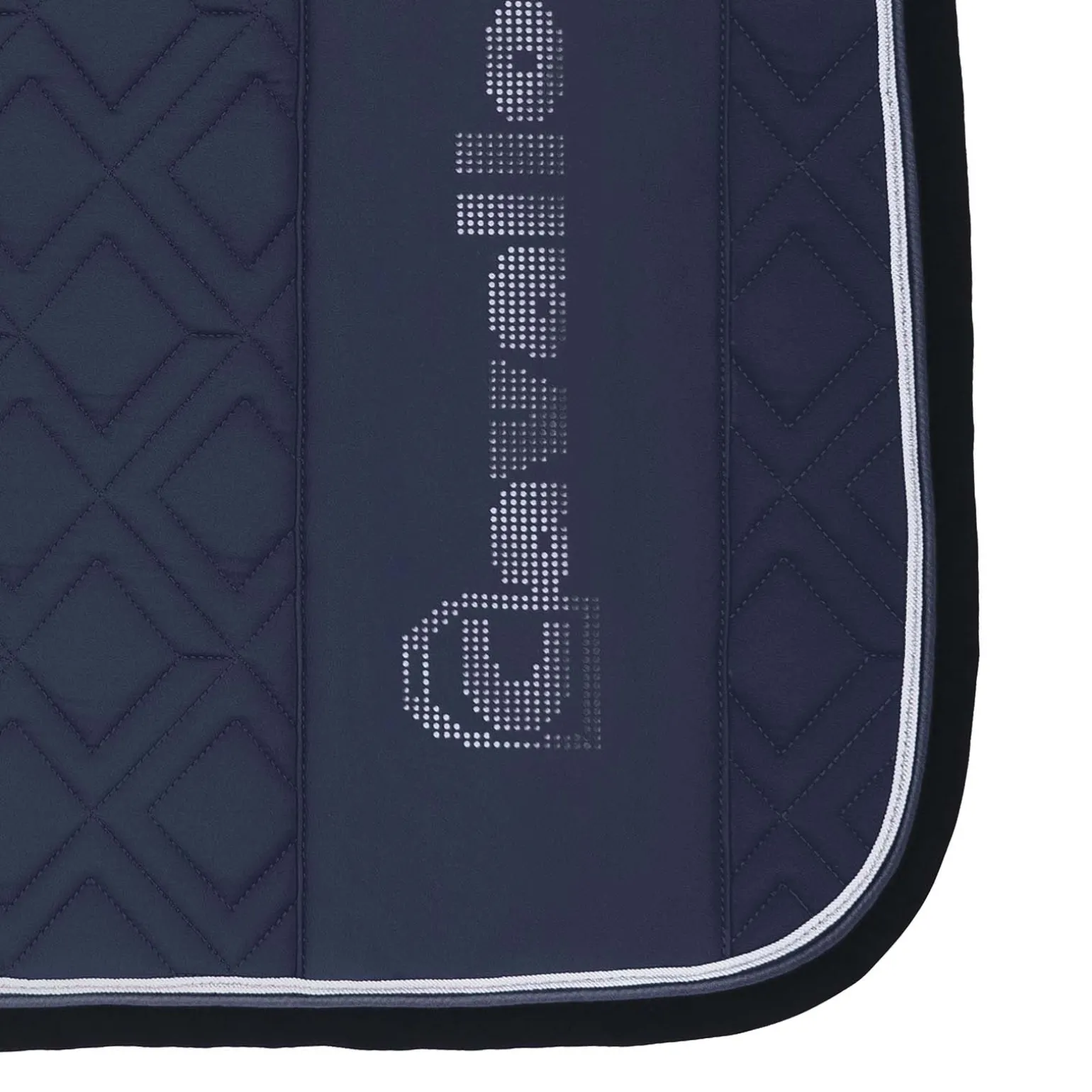 Eine sportliche Funktionsschabracke aus elastischem Softshell Material. Der Oberstoff aus Softshell ist besonders pflegeleicht. Allover mit Double Diamond Steppung versehen. Beidseitig an der Hinterseite mit einem vertikalen, glatten, tonalen Streifen versehen. Auf dem Streifen befindet sich ein perforiertes, großes, vertikales Cavallo Logo. Unter den Löchern des Cavallo Logos befindet sich schimmerndes Reflexmaterial. Die Verstärkung aus Memory Schaum an der Vorderseite gewährleistet eine optimale Lage unter dem Sattel. Eingerahmt wird die Schabracke von einem weißen Band mit schmalem silbernen Streifen. Das schnell trocknende und Feuchtigkeit transportierende Mesh-Futter ist besonders fellfreundlich und bietet höchsten Komfort. Eine formbeständige Wattierung ermöglicht der Schabracke eine perfekte Lage auf dem Pferderücken.