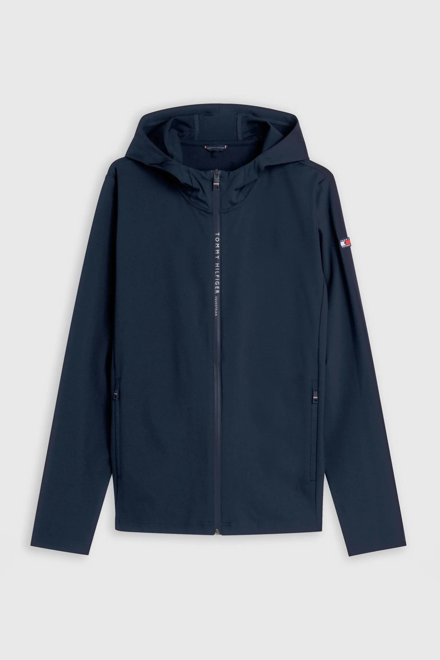 Performance Windbreaker Jacke mit Kapuze, wasserdichtem Tommy Hilfiger bedrucktem Reißverschluss vorne, Silicon-Badge auf der linken Brust, 2 Seitentaschen mit Reißverschluss und Logo-Schriftzug auf dem Rücken oberhalb des Saumes. Aus windabweisendem, leichten Material hergestellt.