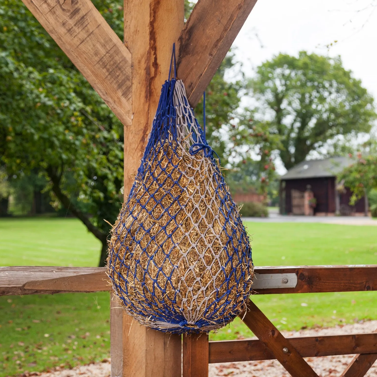 Slow down greedy feeders with this high-quality haynet. Metal rings and robust hanging rope make it a durable choice. This single-layer haynet has smaller holes, perfect for slowing down greedy feeders for better digestion – also preventing wasted hay from falling to the floor or mixing into bedding.