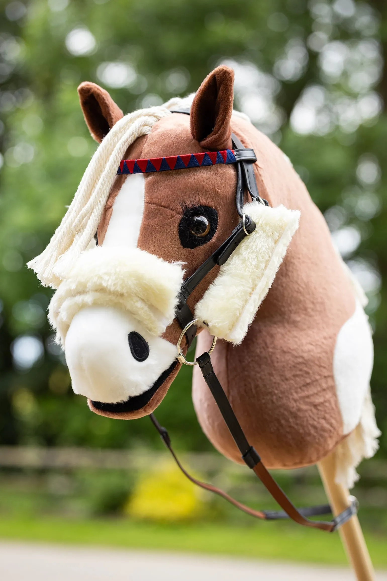 Dieses Hobby Horse Rennzaumzeug-Set enthält einen authentischen orangenen Rennzügel, ein Renngebiss, ein abnehmbares Kunstfell-Nasenpolster (Shadow Roll) und Seitenteile im französischen Stil – ganz wie beim echten Rennzubehör. Der passende Stirnriemen mit Schleife ist farblich abgestimmt und rundet den Look ab. Bereit fürs nächste Rennen? Geeignet für Kinder ab 3 Jahren.
