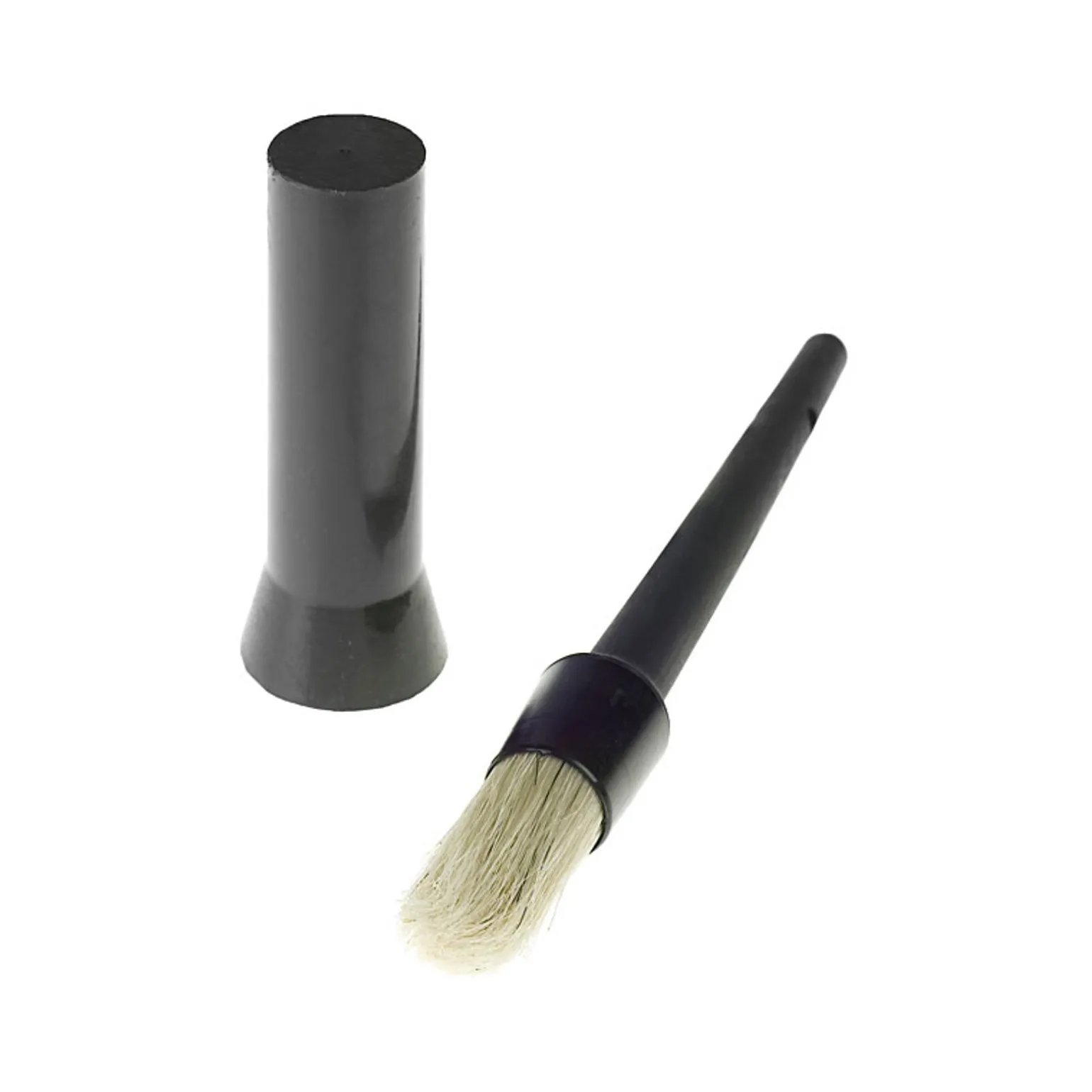 Die Kappe sorgt für eine saubere Aufbewahrung. Der Pinsel eignet sich auch zum Auftragen von Lederöl.