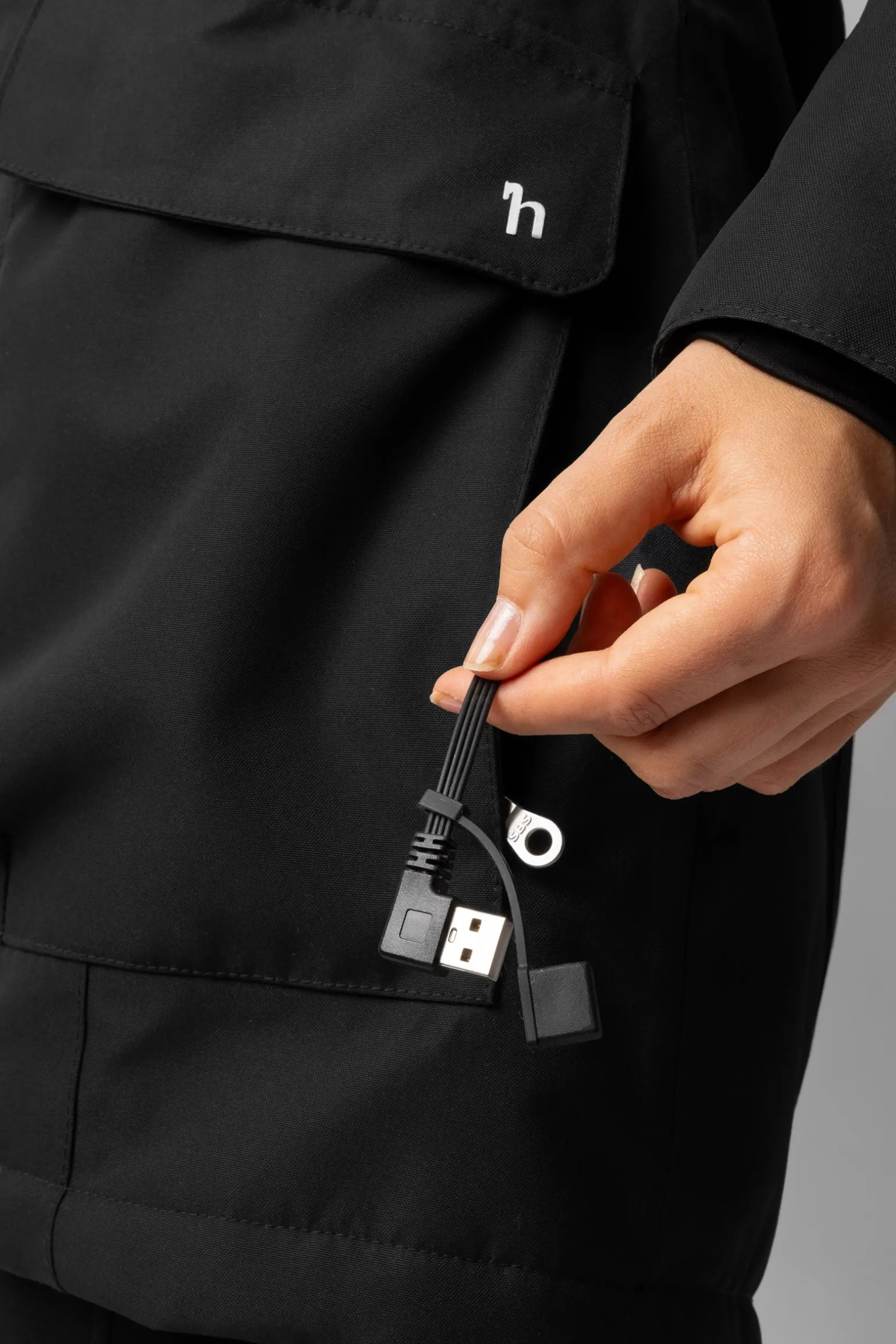 Maschinenwäsche im Schonwaschgang bei 30 Grad, Powerbank vor dem Waschen entfernen und USB-Abdeckung schließen, alle Reißverschlüsse und Druckknöpfe vor dem Waschen schließen, auf links waschen, mit ähnlichen Farben waschen, keinen Weichspüler verwenden, nicht im Trockner trocknen.