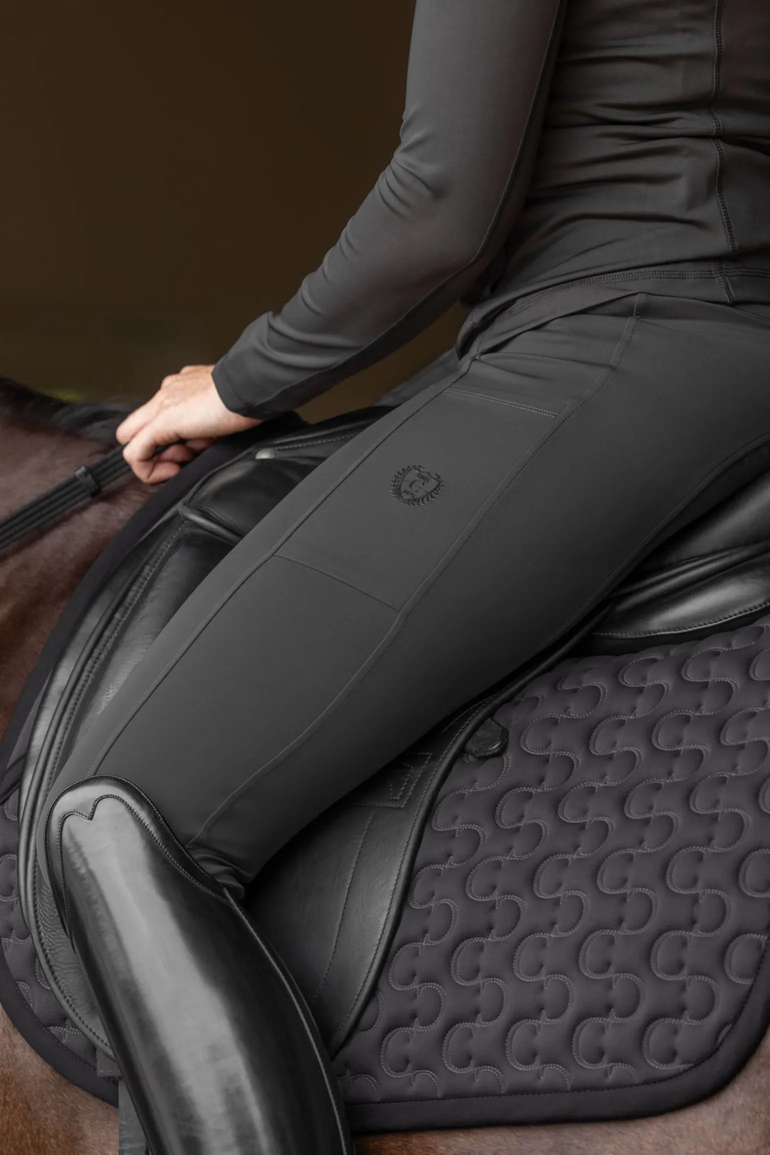 Die innovativen Reitleggings mit Grip-Vollbesatz wurden speziell für maximalen Komfort und Leistung entwickelt. Die Leggings bieten einen Kompressionseffekt zur Unterstützung der Muskeln und sind angenehm zu tragen. Ihr formstabiles, weiches und leichtes Material sorgt für Bewegungsfreiheit und Komfort beim Reiten. Der Vollbesatz mit Covalliero Grip gewährleistet sicheren Halt im Sattel, während die 4-Wege-Elastizität maximale Flexibilität ermöglicht.