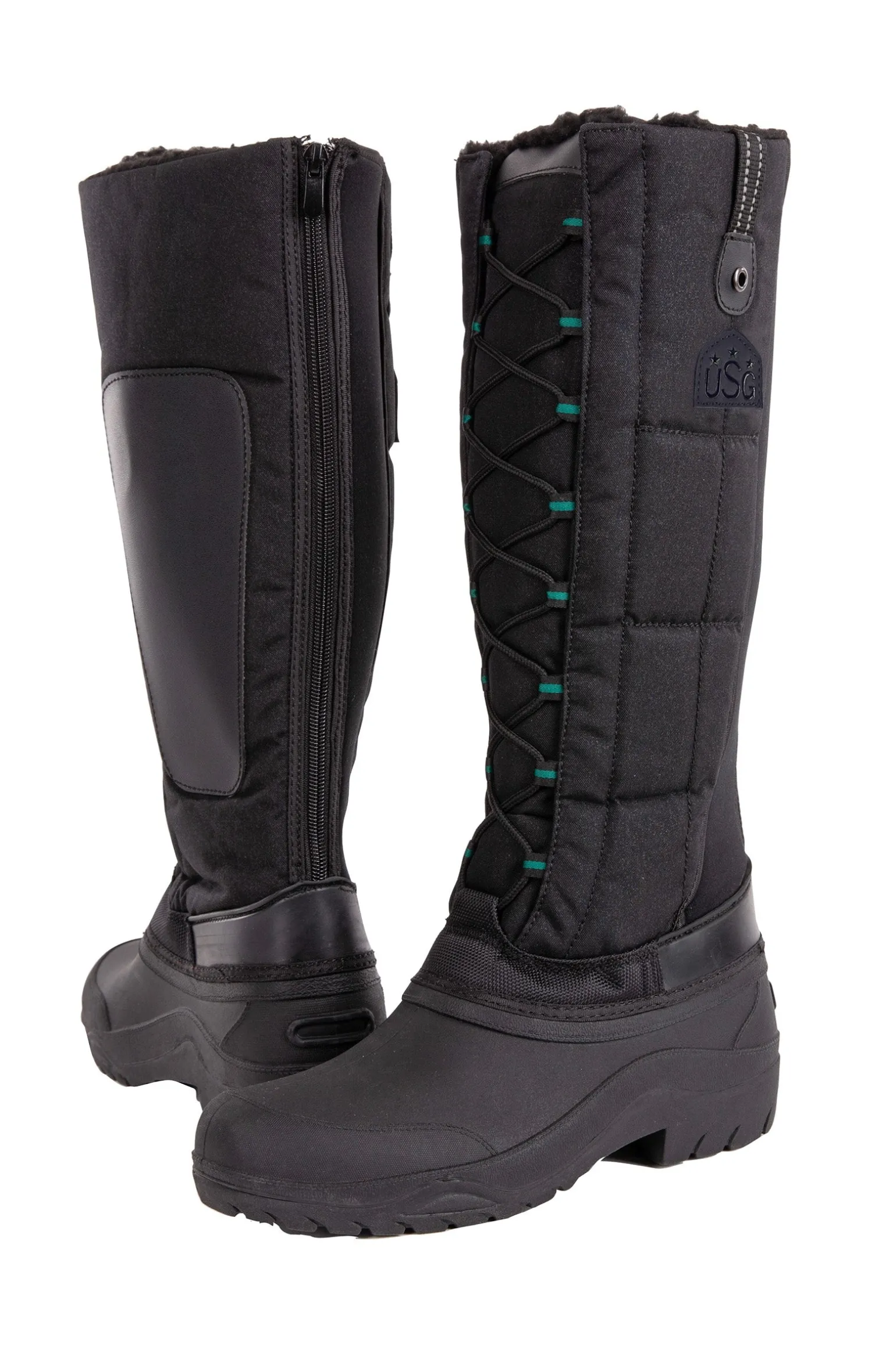 Der Winterthermostiefel „Happy Boot Kärnten“ ist durch einen Reißverschluss hinten einfach an- und auszuziehen und wasserdicht bis zum Reißverschluss. Vorne kann der warme Stiefel mittels Schnürung optimal an die eigene Beinform angepasst werden und garantiert so eine gute Isolation. Der gesamte Innenbereich ist mit synthetischem Fell gefüttert. Die zum Pferd gerichteten Schaftseiten sind mit einem glatten Materialaufsatz ausgestattet, um intensiver Beanspruchung standzuhalten.