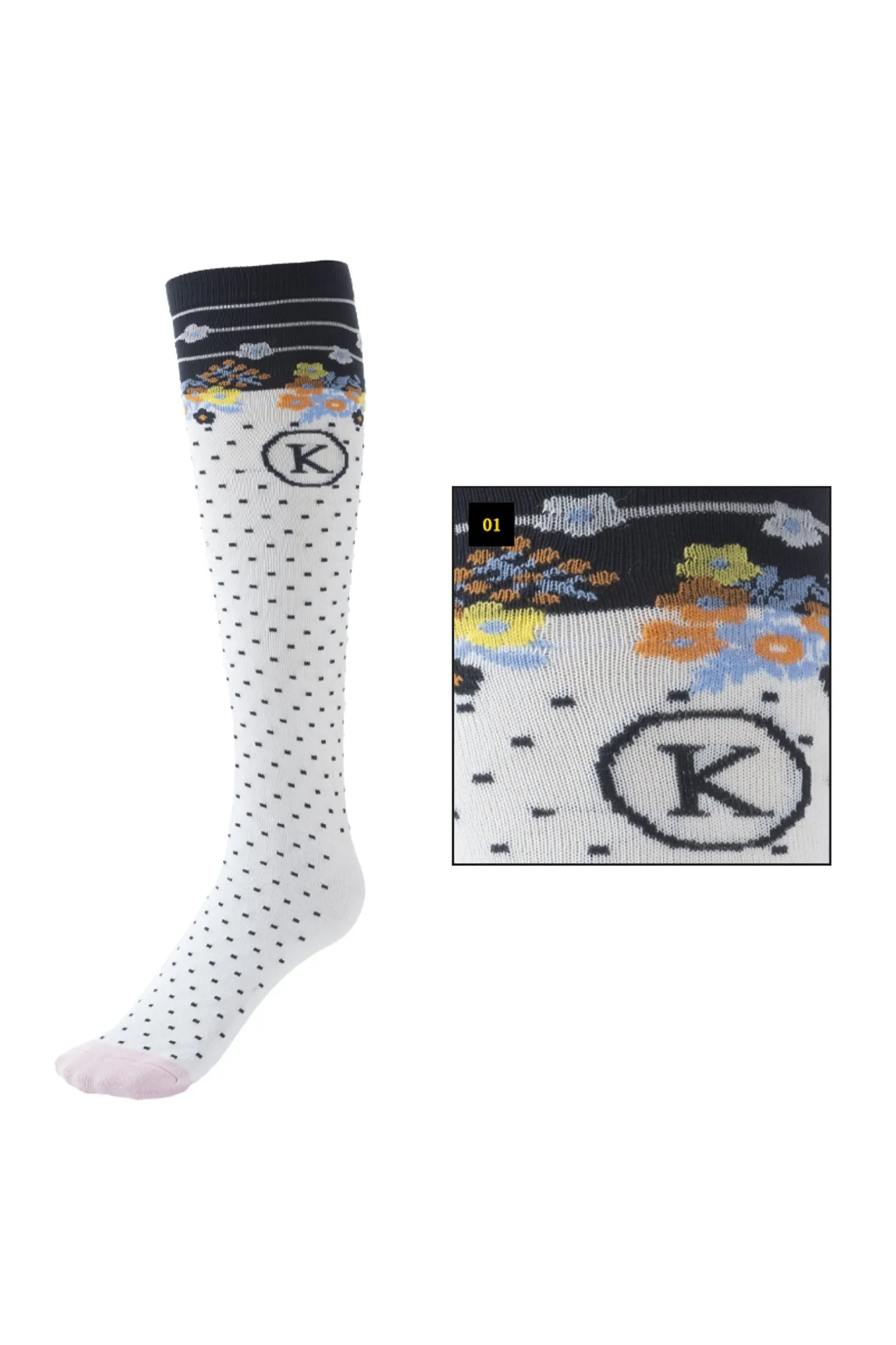 Sommersocken „KavalSocks Summer“ Die Kniestrümpfe von Kavalkade im sommerlichen Design sind ideal für wärmere Tage. Sie sind aus einem extra dünnem Material und die Farben sowie das Muster verbreiten direkt gute Laune. Die Reitsocken bestehen aus 80 % Baumwolle, um auch beim Reiten atmungsaktiv zu bleiben und dem Fuß sowie der Wade genügend Luftzirkulation zu bieten. Elastische Materialien im Gewebe sorgen für ein festen Anliegen und kein Verrutschen.