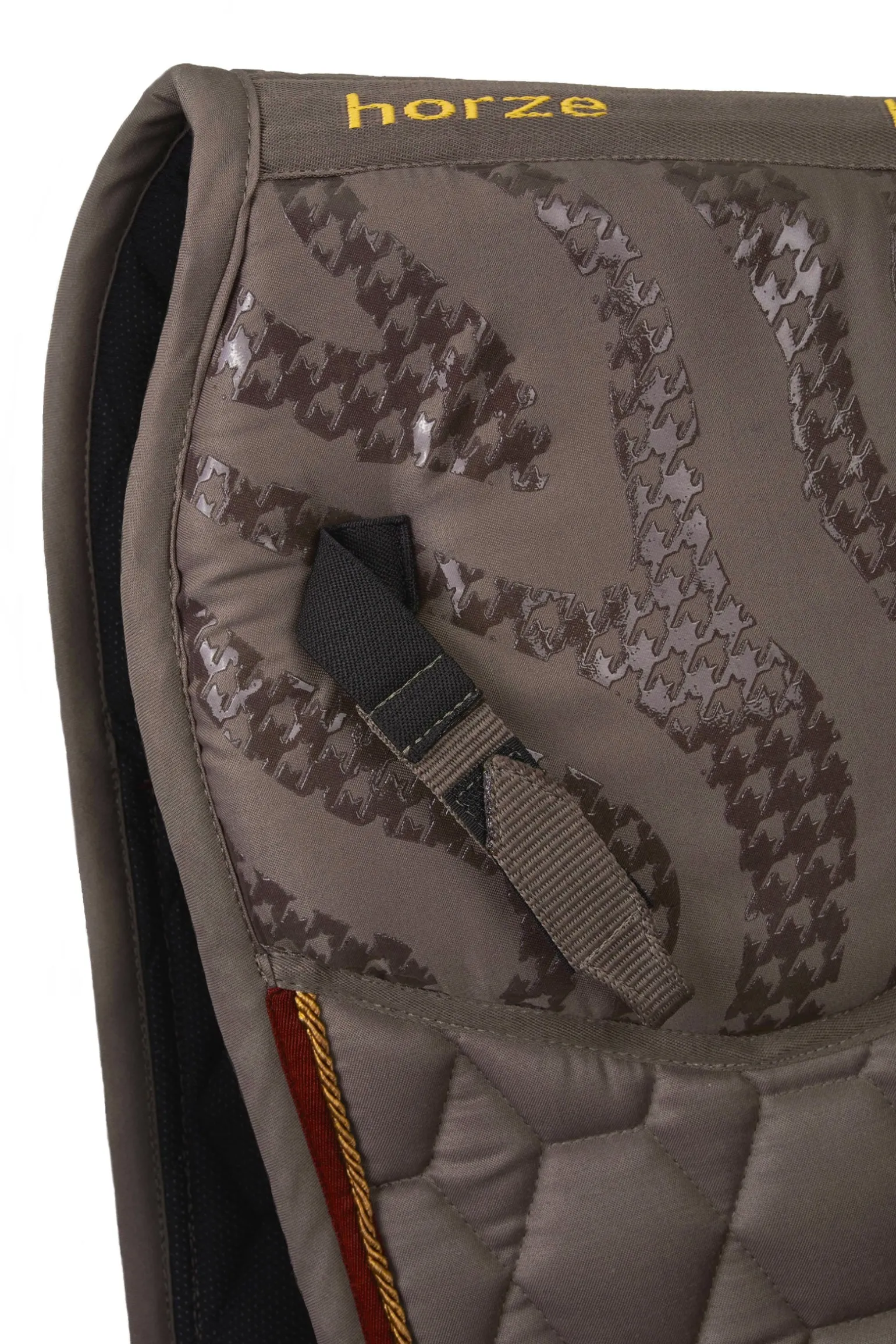 Die anatomisch geschnittene Horze Kenya Schabracke ist mit einem Silikondetail ausgestattet, das ein Verrutschen des Sattels verhindert. Eine leichte Polsterung unterhalb des Sattels sorgt für zusätzlichen Komfort. Das feuchtigkeitsableitende Futter hält den Rücken deines Pferdes trocken. Drei Paspelreihen und das zeitlose Design sorgen für einen klassischen Look. Metallic-Details sorgen für einen eleganten Look. Kombiniere diese Schabracke mit dem Rest unseres Horze Kenya-Sortiments, um ein komplettes Outfit zu erhalten.