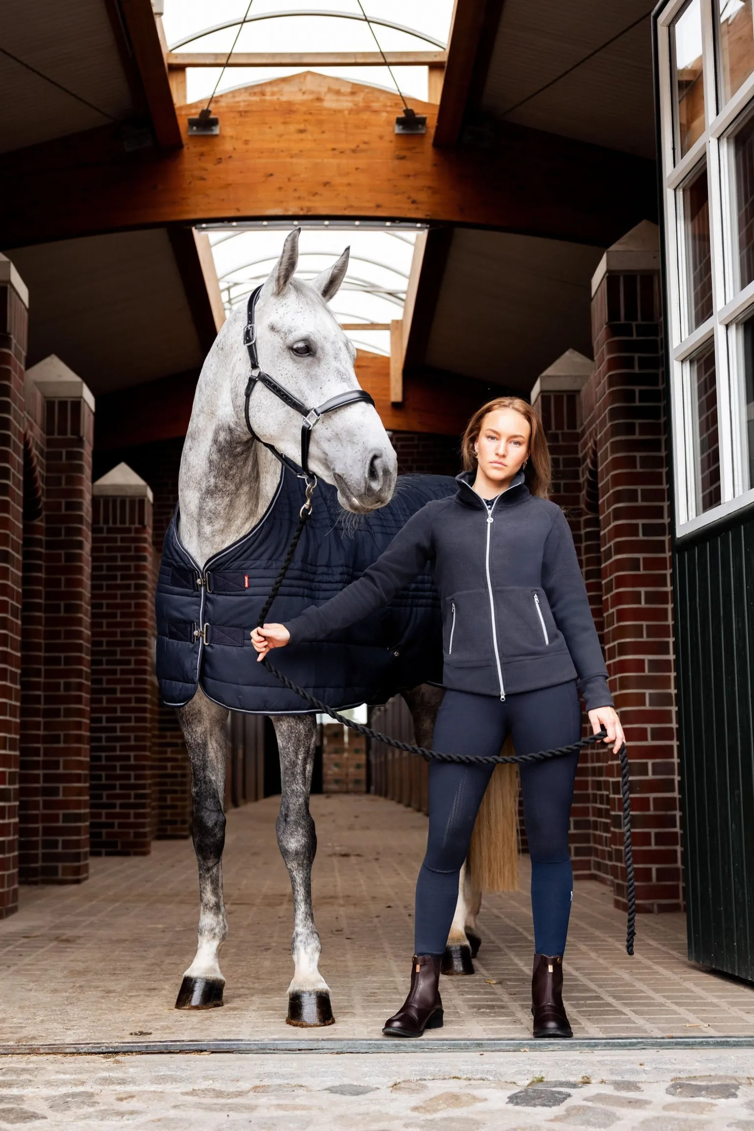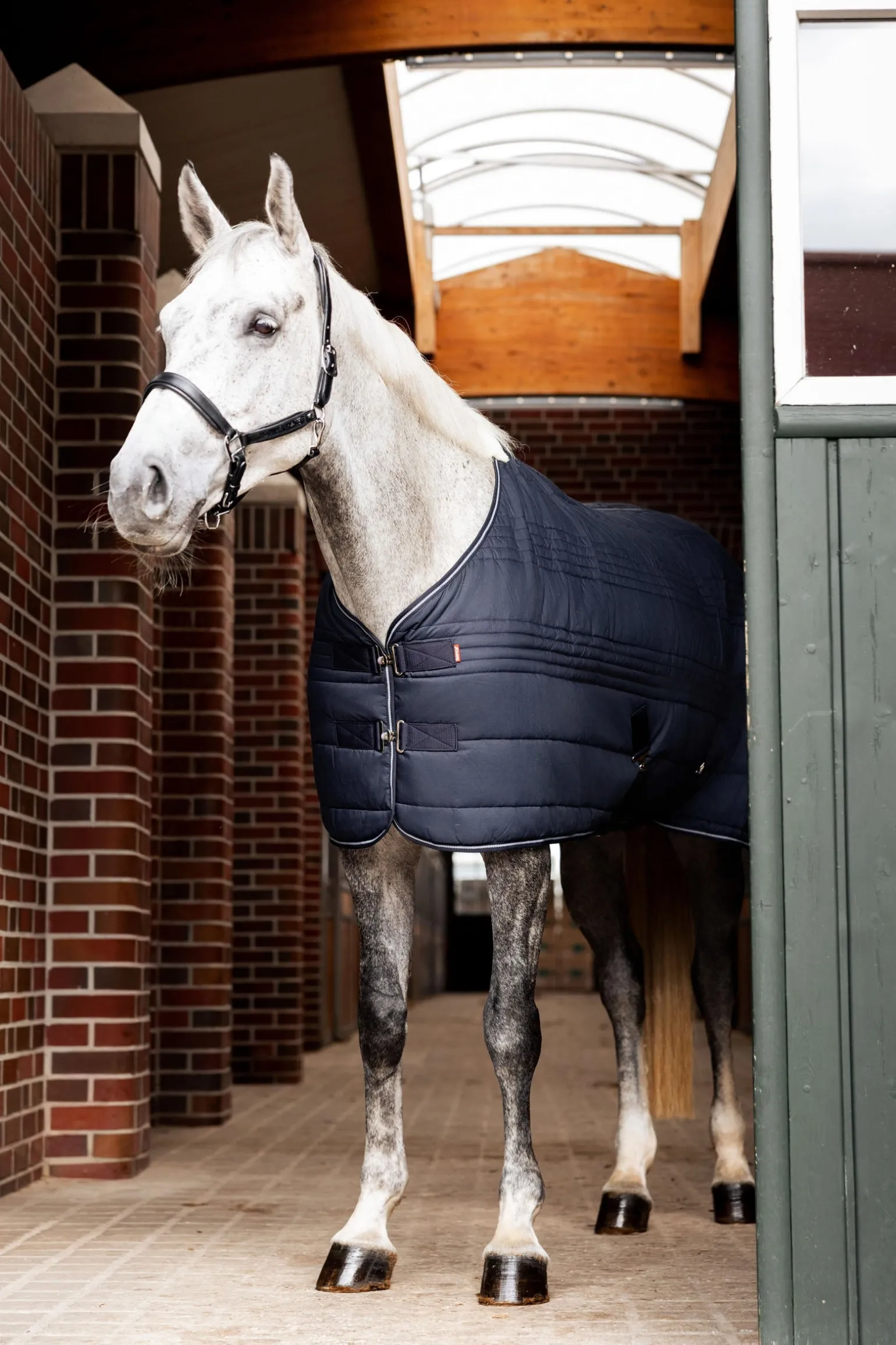 Diese strapazierfähige und dennoch leichte Stalldecke ist ein vielseitiger Begleiter für den täglichen Einsatz. Weiches Fleece am Widerrist sorgt für zusätzlichen Komfort und beugt Scheuerstellen vor. Sichere T-Schnallenverschlüsse vorne und Kreuzgurte halten die Decke zuverlässig an Ort und Stelle, während ein praktischer Schweifriemen für festen Sitz sorgt. Mit ihrem schlichten, klassischen Design ist diese Decke ein zeitloses Basic für die Stallausstattung deines Pferdes.
