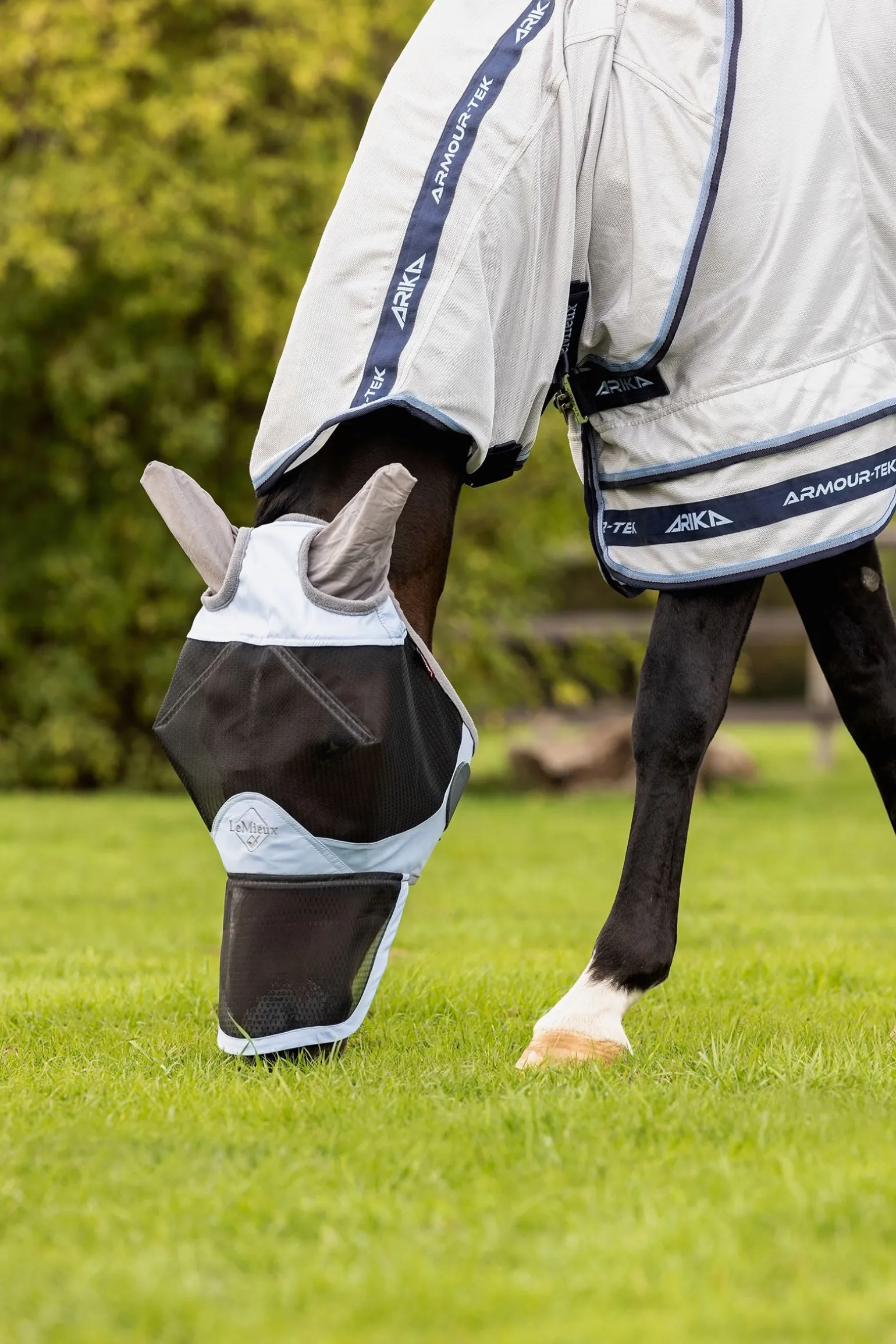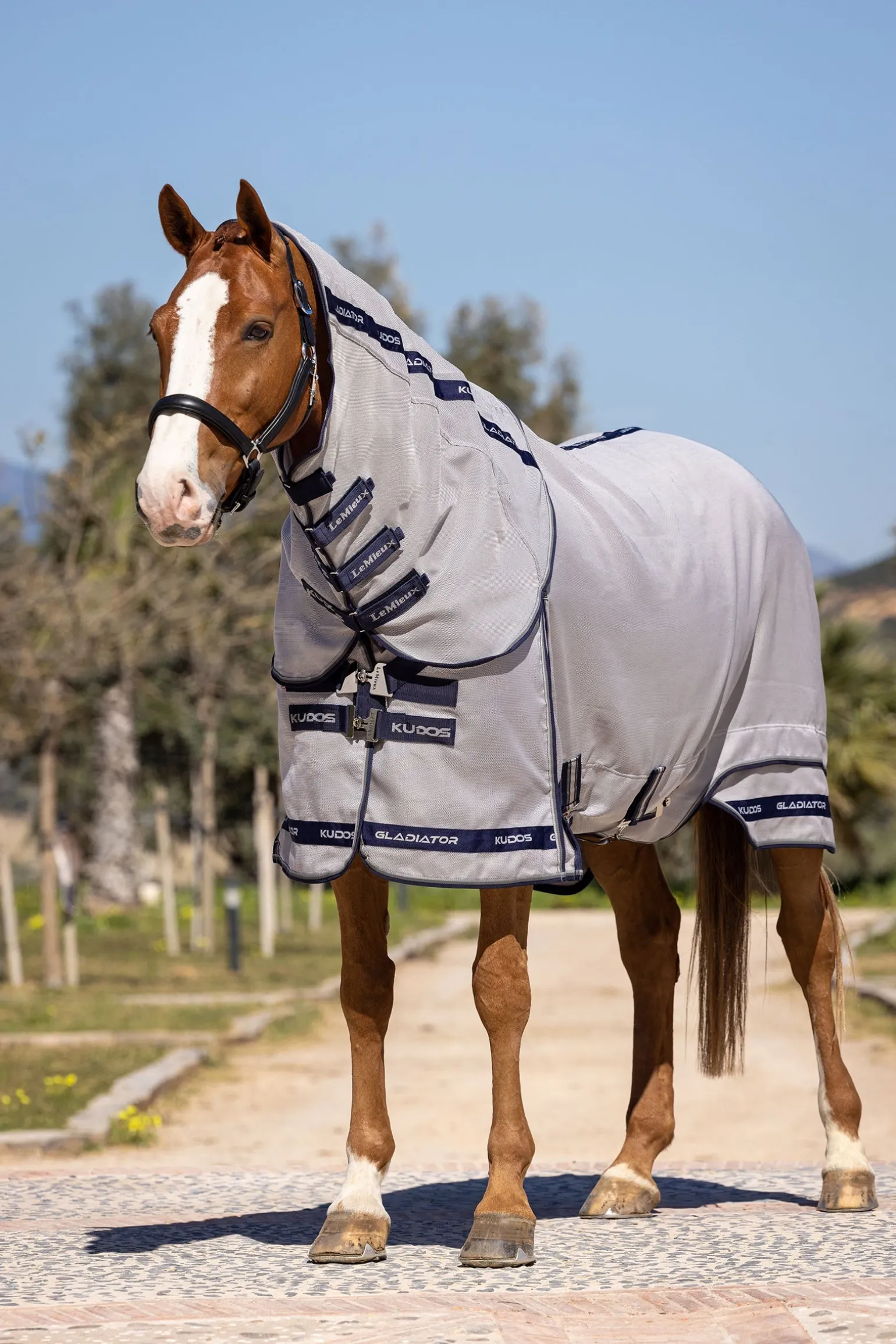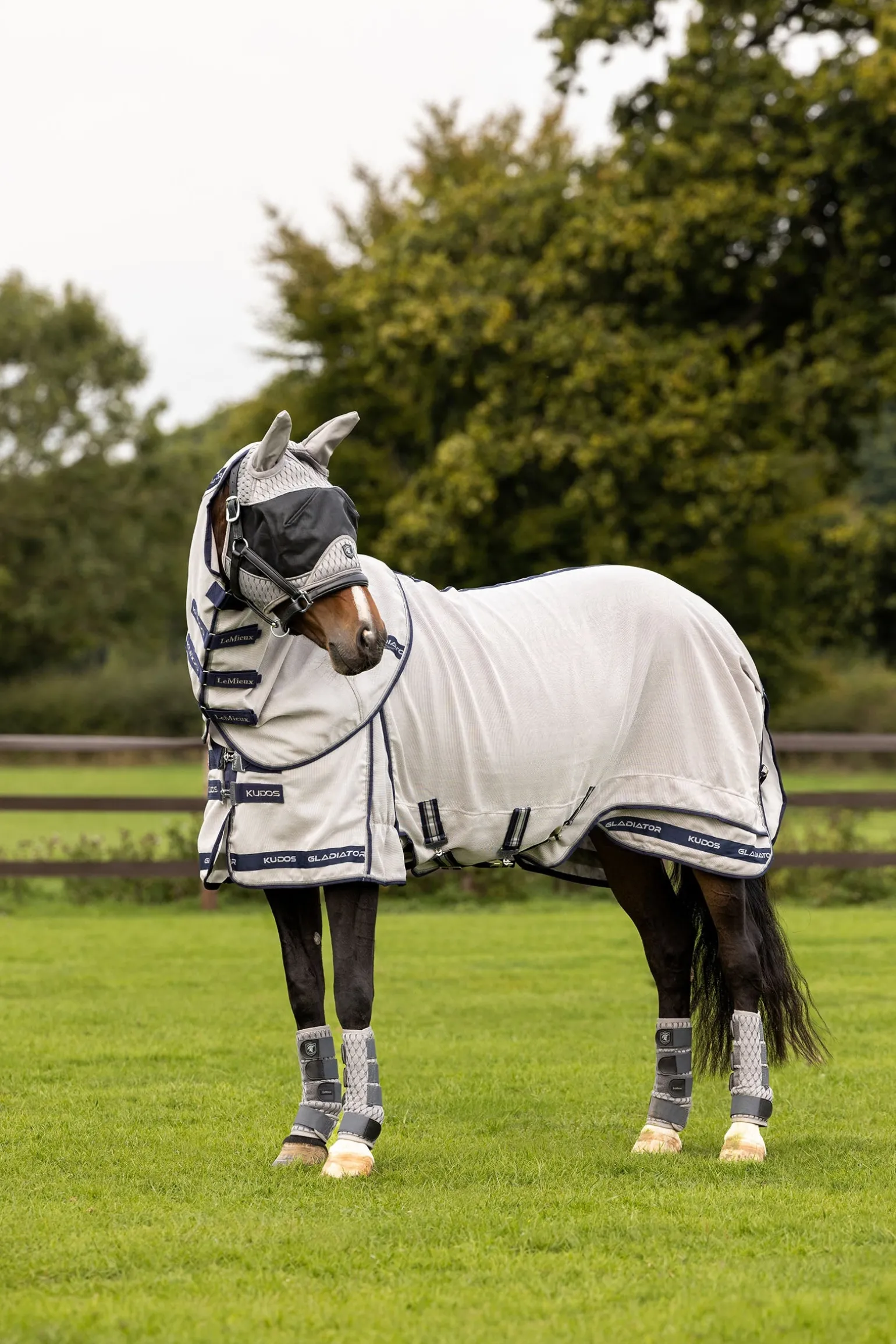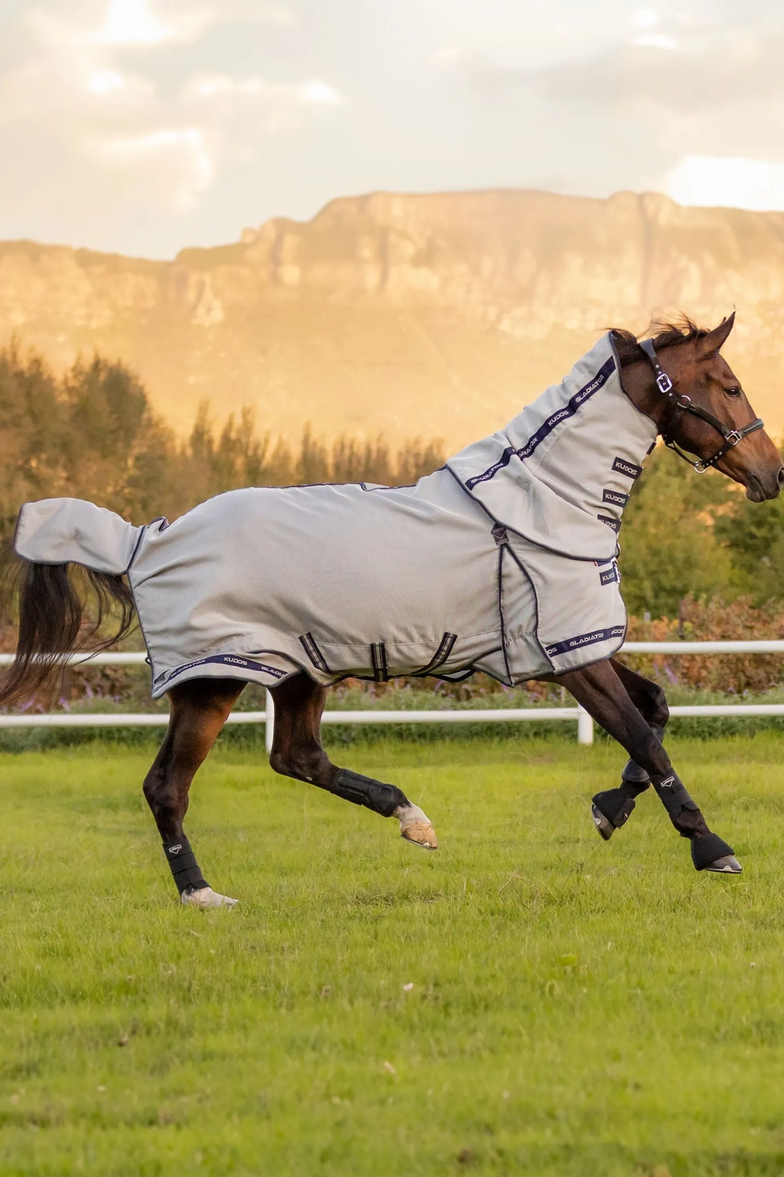 Die Kudos Gladiator Fliegendecke ist der Inbegriff von Luxus und Funktionalität. Sie besteht aus einem besonders strapazierfähigen, intelligenten Power-Form-Mesh, das sich mit der Zeit der Körperform des Pferdes anpasst. Das leichte Gewebe aus robustem Nylon und Monofilament-Polyester ist hoch atmungsaktiv, wasserabweisend und trocknet schnell. Die verlängerte, anatomisch geschnittene Bauchklappe bietet optimalen Schutz und ist mit einem dreifachen Verschluss ausgestattet, inklusive abnehmbarem Mittelriemen, der hilft, die Decke bei Bewegung in Position zu halten. Das designgeschützte, schräge Brustverschlusssystem verteilt den Druck gleichmäßig und verhindert Scheuerstellen an Schulter und Brust. Der patentierte, zweiteilige Deckenschnitt sorgt für einen Spannungsabbau entlang des Saums und ermöglicht maximale Bewegungsfreiheit.