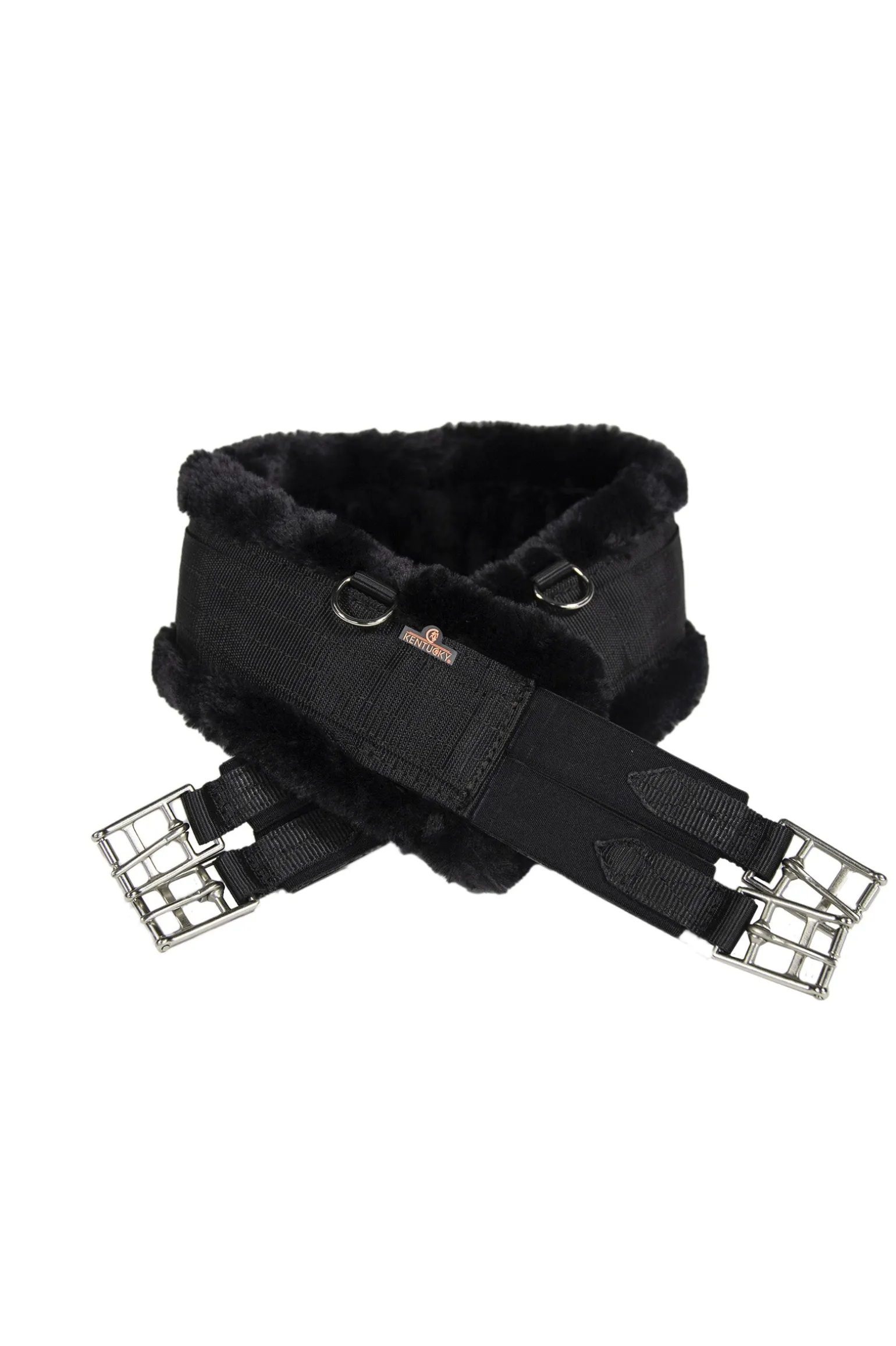 Der Kentucky Horsewear Lammfell-Gurt ist ein extrem weicher und komfortabler Gurt der hauptsächlich für Trainingszwecke verwendet wird. Er wurde für Pferde entwickelt, die eine empfindliche Haut bezüglich Gallen und Reibungen haben. Er besteht aus künstlich hergestelltem Lammfell mit den selben Eigenschaften und Leistungen von echtem Lammfell. Die Schnallen sind aus rostfreiem Edelstahl mit einem dreifach gelegten Elastikeinsatz auf beiden Seiten für mehr Stabilität und Langlebigkeit. Das Außenmaterial ist Nylon und damit sehr leicht. Der Lammfell Gurt kann in der Maschine gewaschen und an der Luft getrocknet werden.