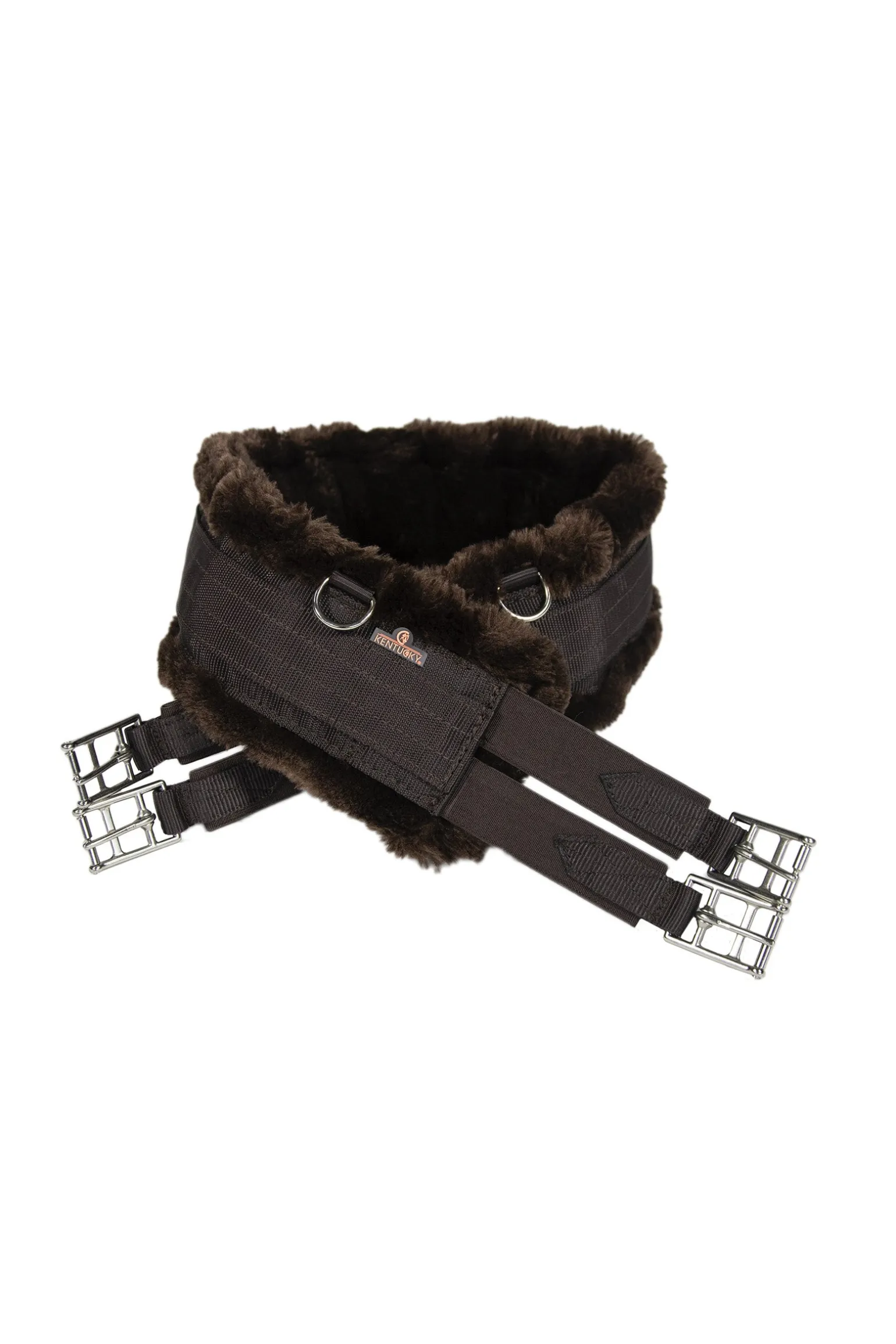 Der Kentucky Horsewear Lammfell-Gurt ist ein extrem weicher und komfortabler Gurt der hauptsächlich für Trainingszwecke verwendet wird. Er wurde für Pferde entwickelt, die eine empfindliche Haut bezüglich Gallen und Reibungen haben. Er besteht aus künstlich hergestelltem Lammfell mit den selben Eigenschaften und Leistungen von echtem Lammfell. Die Schnallen sind aus rostfreiem Edelstahl mit einem dreifach gelegten Elastikeinsatz auf beiden Seiten für mehr Stabilität und Langlebigkeit. Das Außenmaterial ist Nylon und damit sehr leicht. Der Lammfell Gurt kann in der Maschine gewaschen und an der Luft getrocknet werden.