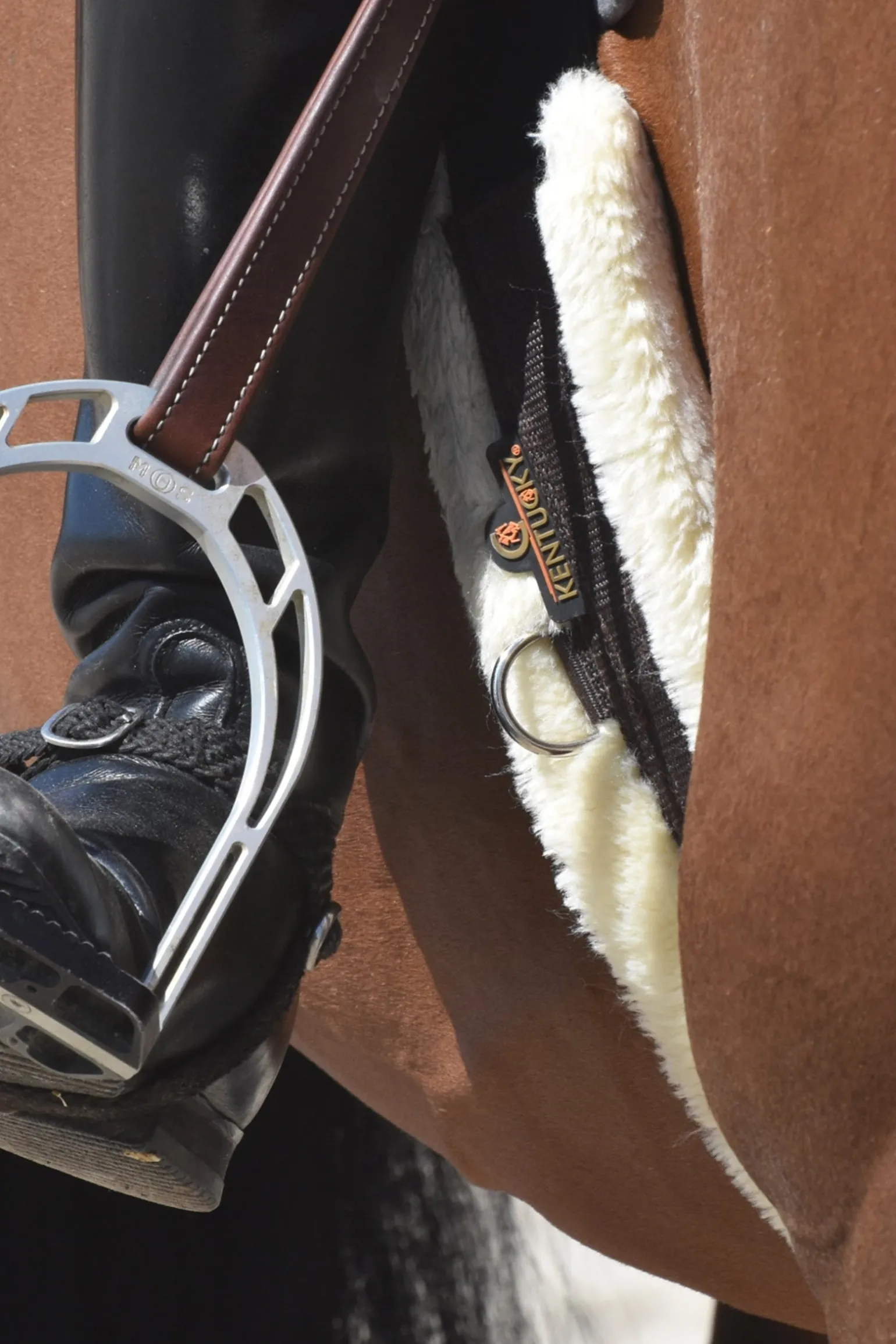 Der Kentucky Horsewear Lammfell-Gurt ist ein extrem weicher und komfortabler Gurt der hauptsächlich für Trainingszwecke verwendet wird. Er wurde für Pferde entwickelt, die eine empfindliche Haut bezüglich Gallen und Reibungen haben. Er besteht aus künstlich hergestelltem Lammfell mit den selben Eigenschaften und Leistungen von echtem Lammfell. Die Schnallen sind aus rostfreiem Edelstahl mit einem dreifach gelegten Elastikeinsatz auf beiden Seiten für mehr Stabilität und Langlebigkeit. Das Außenmaterial ist Nylon und damit sehr leicht. Der Lammfell Gurt kann in der Maschine gewaschen und an der Luft getrocknet werden.