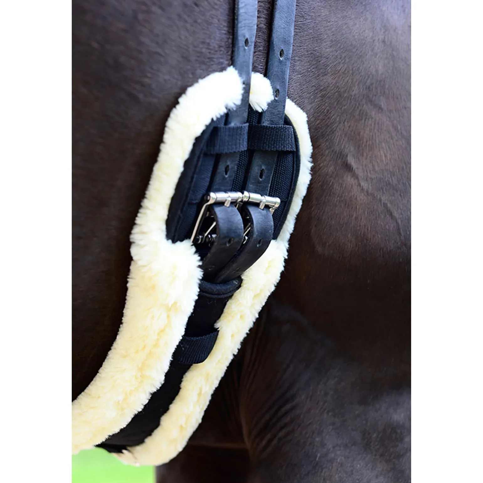 Der Kentucky Horsewear Fell-Kurzgurt ist ein kurzer Gurt im klassischen Stil, aber aus innovativen Materialien. Der Gurt besteht aus modisch gesteppter Baumwolle in Kombination mit extrem weichem Schaffell. Der Fell-Kurzgurt mit Fell ist die ideale Lösung für Pferde mit empfindlicher Haut und frisch geschorene Pferde sowie um Druckstellen und Reizungen zu verhindern. Die Feder-Schnallen und D-Ringe sind aus Edelstahl gefertigt. Die D-Ringe in der Mitte können auch zum Verschnallen von Hilfszügeln verwendet werden. Die verwendeten Materialien des Fell-Kurzgurt machen die Pflege sehr einfach, denn nach Gebrauch kann er bei 30 ° C in der Waschmaschine gewaschen werden. Er besteht aus künstlich hergestelltem Lammfell mit den selben Eigenschaften und Leistungen von echtem Lammfell.