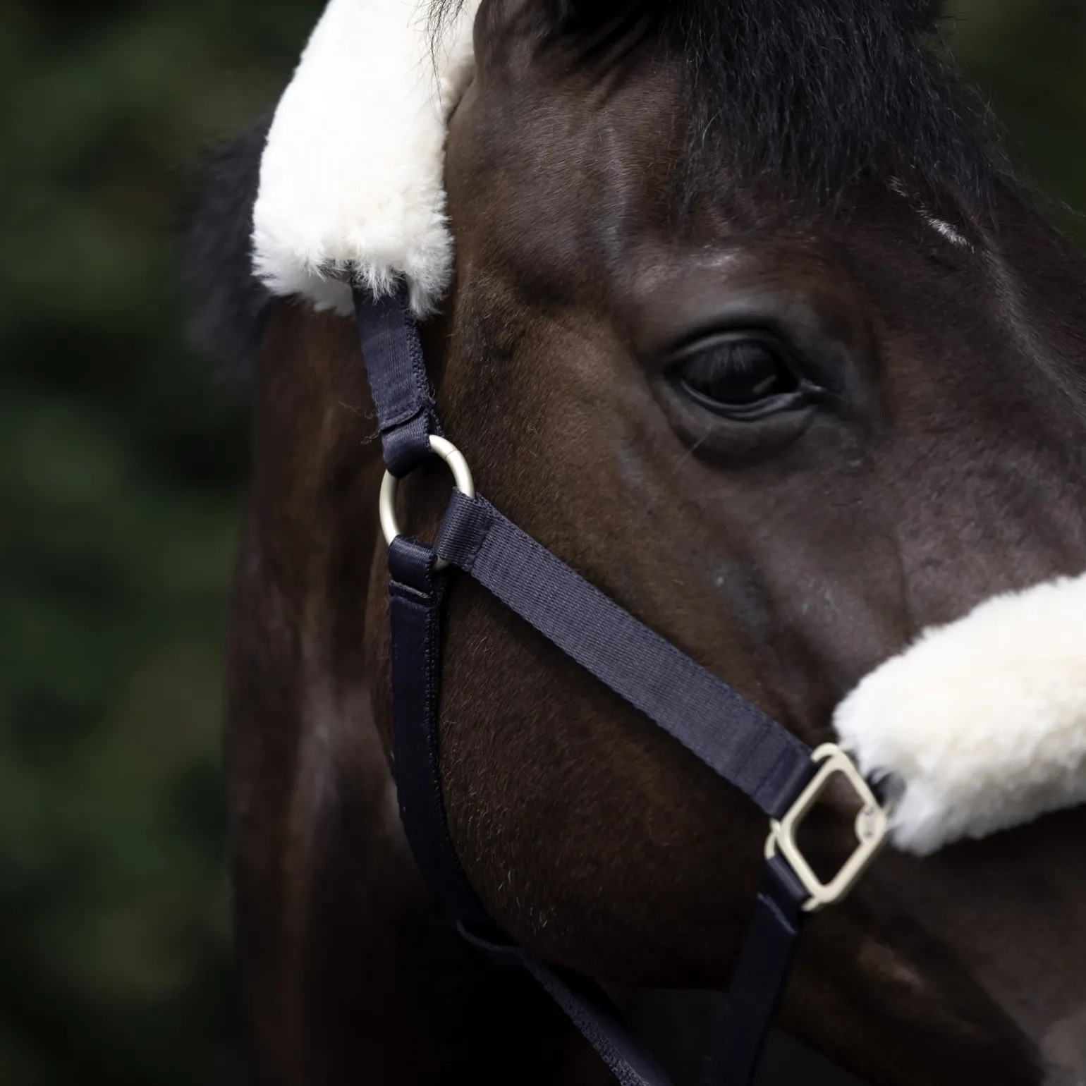 Echtes Schaffell an diesem Halfter sorgt für höchsten Komfort am Pferdekopf.