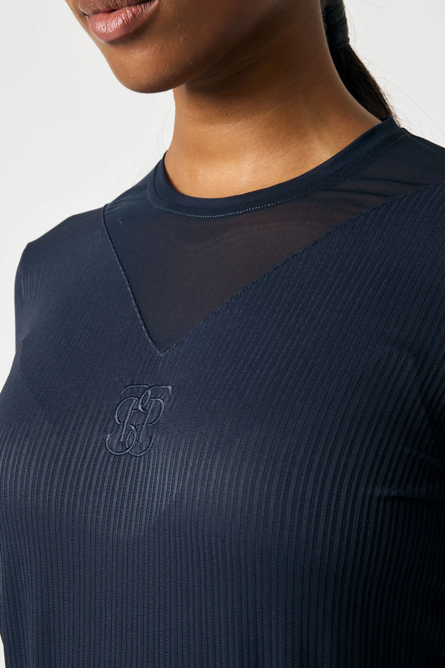 Langarmshirt mit figurbetontem Schnitt aus gestreiftem, atmungsaktivem und leichtem Mesh.